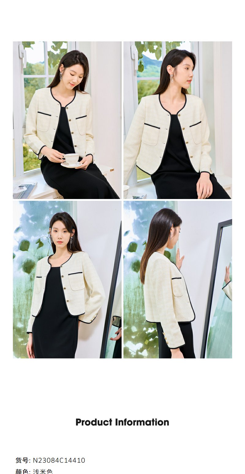 NEELLY纳俪商场同款小香风短外套2023秋季新款高级感通勤气质上衣N23084C14410