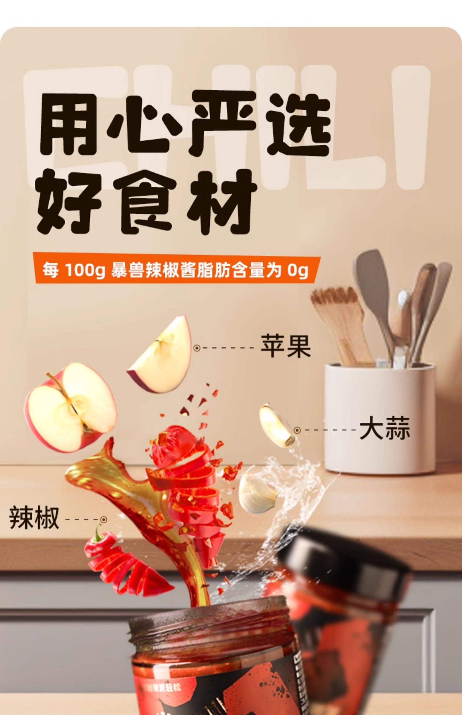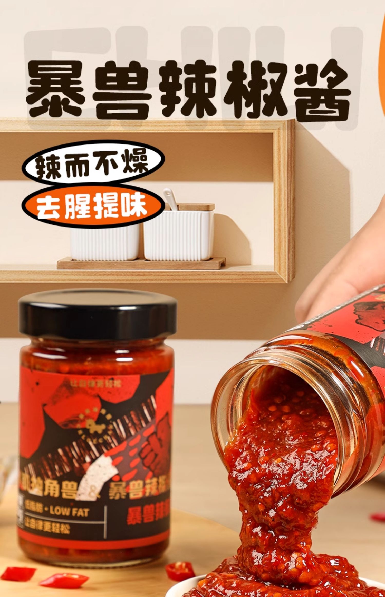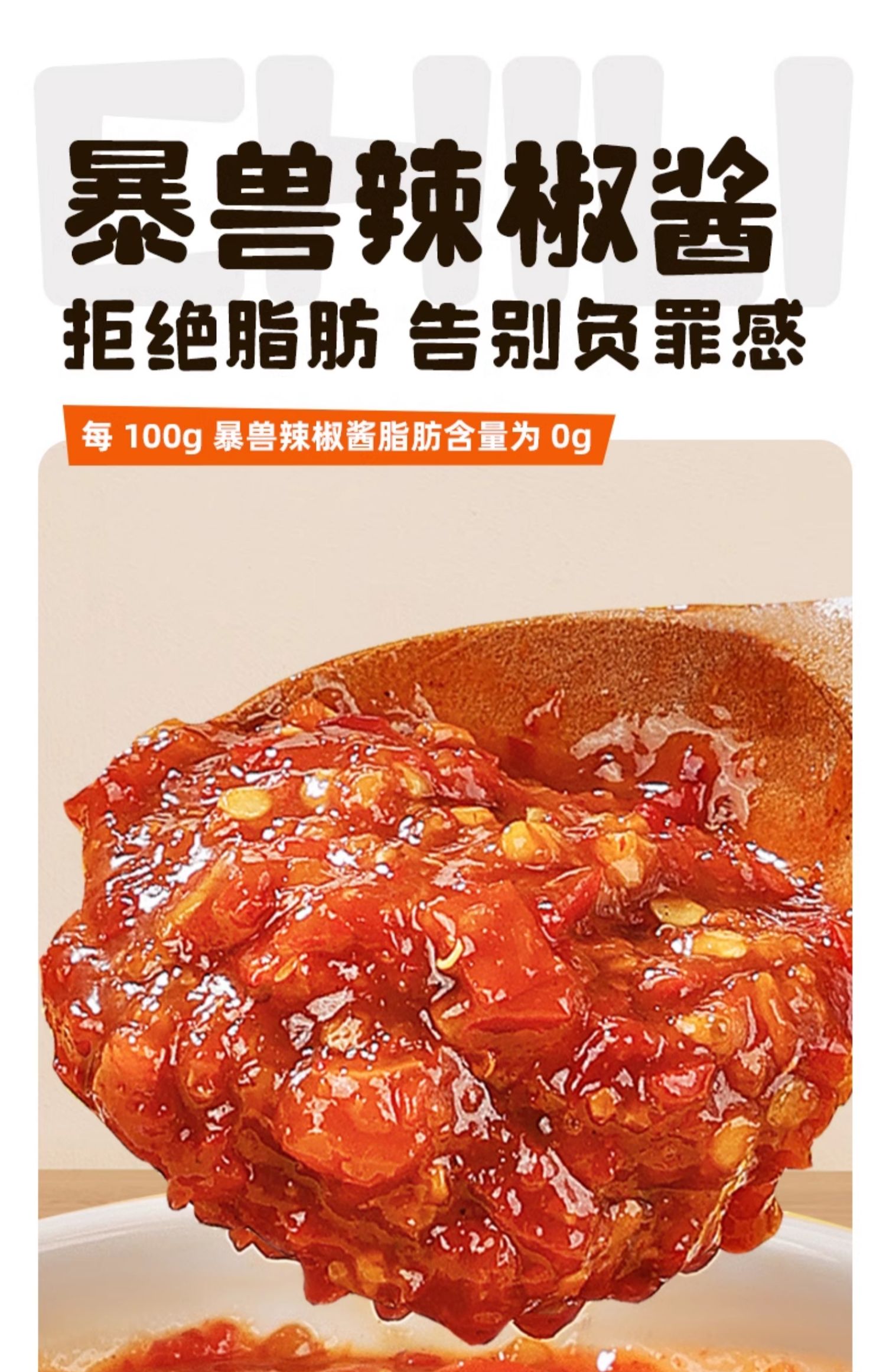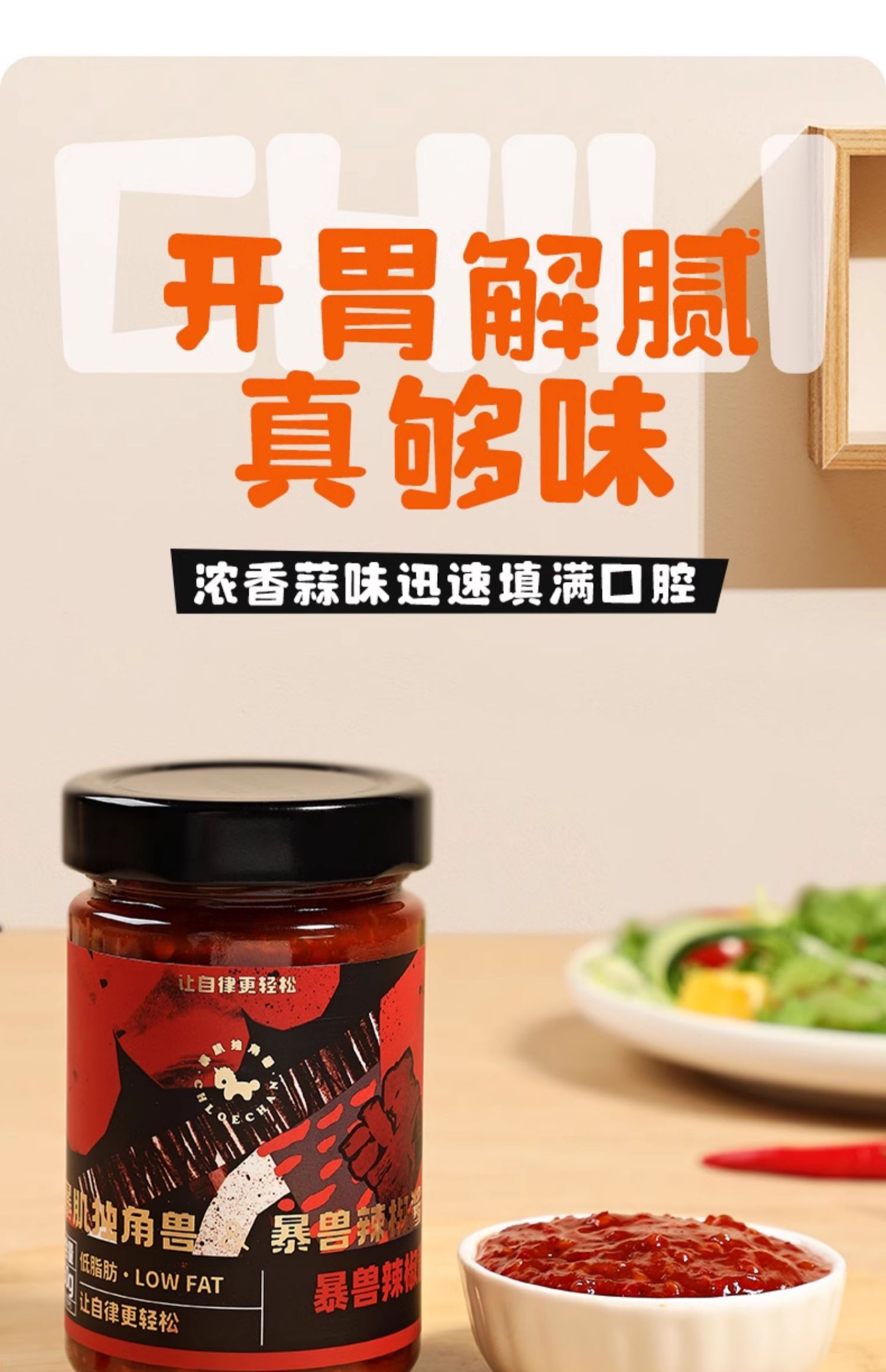暴肌独角兽辣椒蒜蓉酱0脂甜辣拌面饭酱轻食0白砂糖下饭剁椒香辣酱
