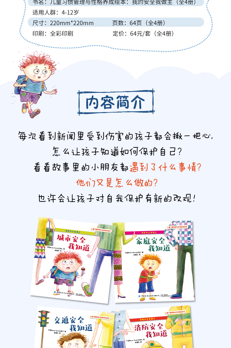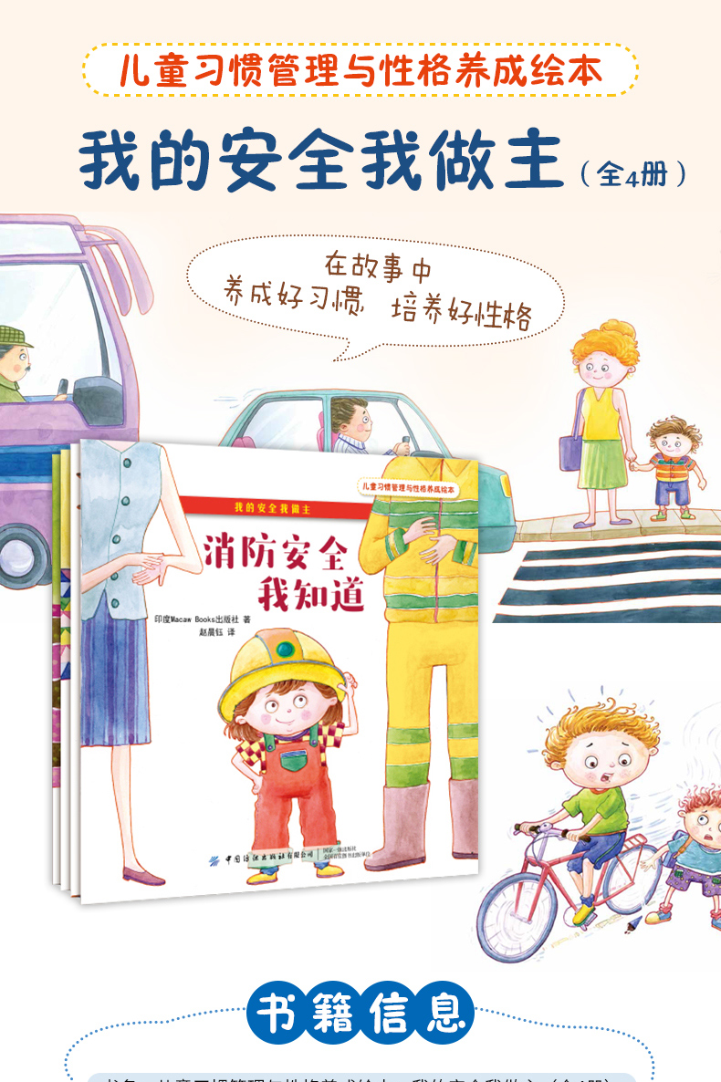 【套装4册】儿童习惯管理与性格养成绘本 我的安全我做主 全彩印刷 儿童安全知识科普读物 亲子教育 儿童交通消防家庭城市安全绘本