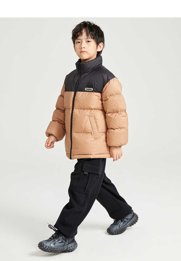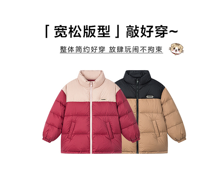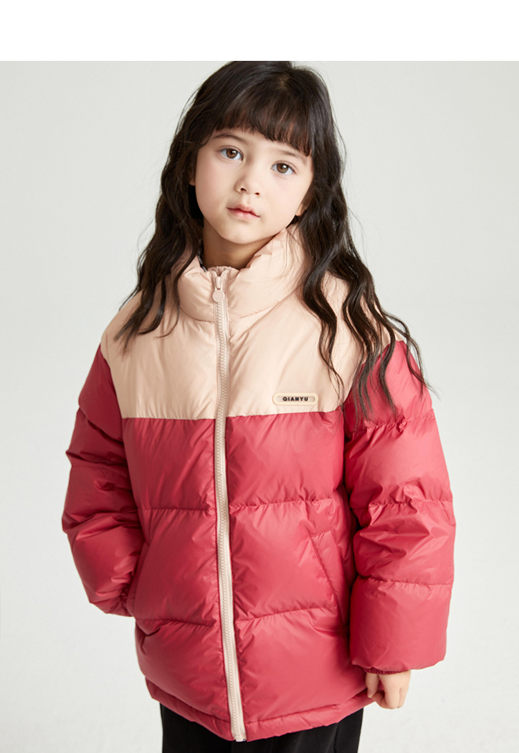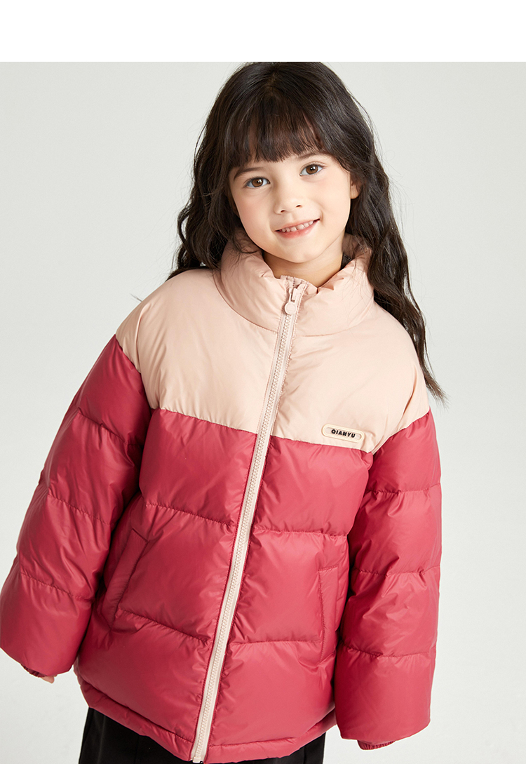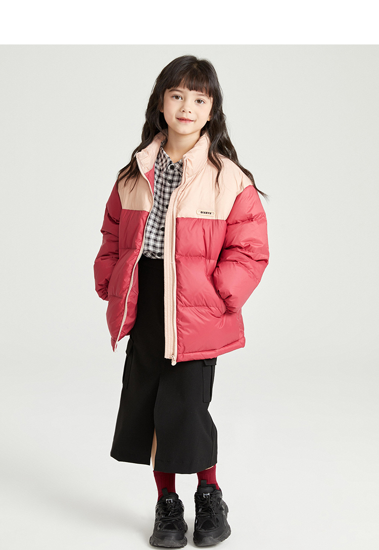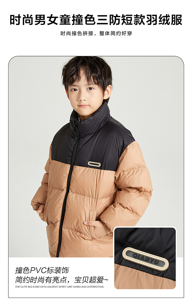 笛莎千与2024冬季新款男女童同款时尚撞色三防短款羽绒服