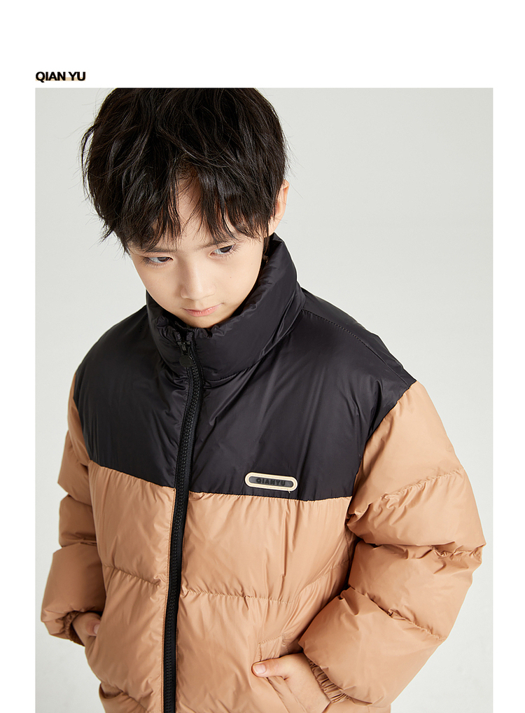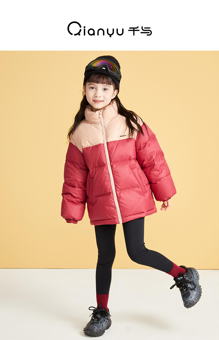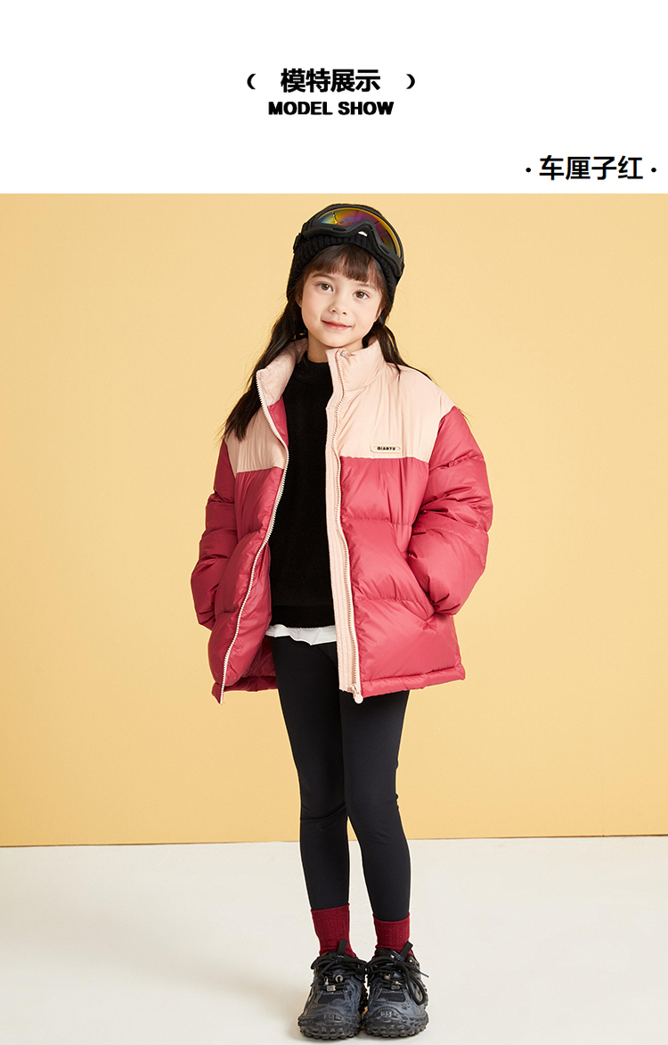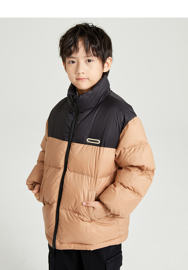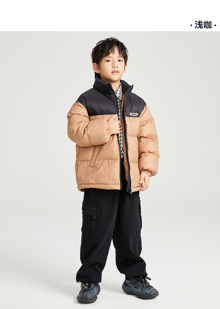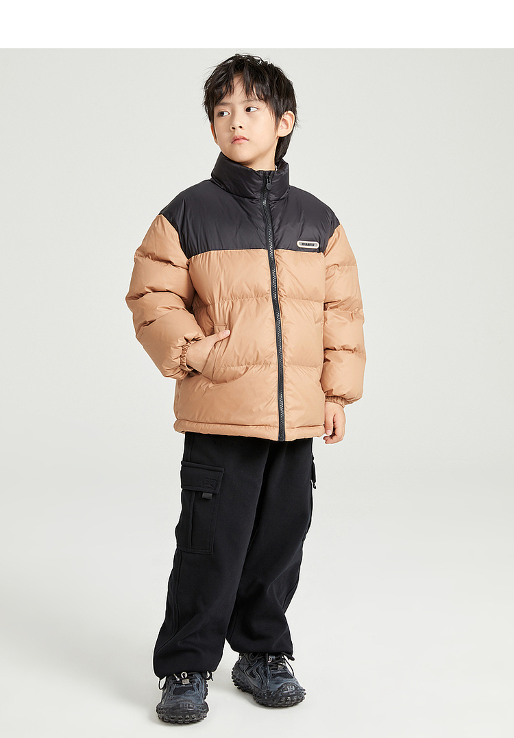 笛莎千与2024冬季新款男女童同款时尚撞色三防短款羽绒服