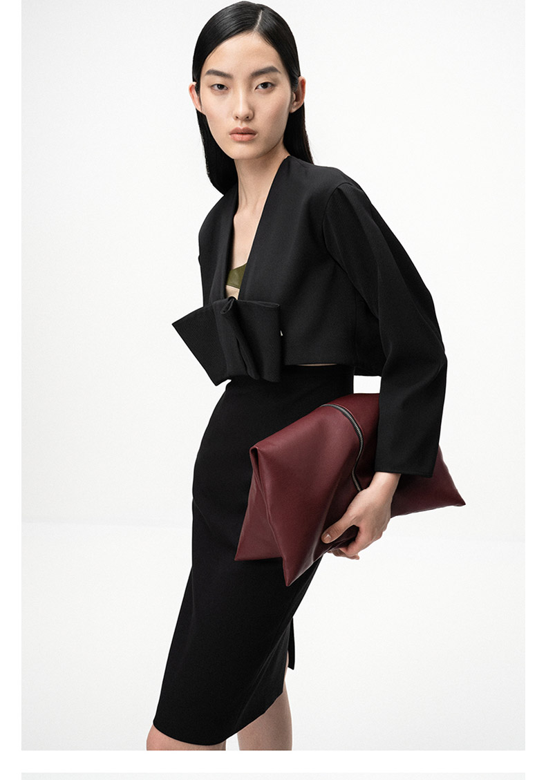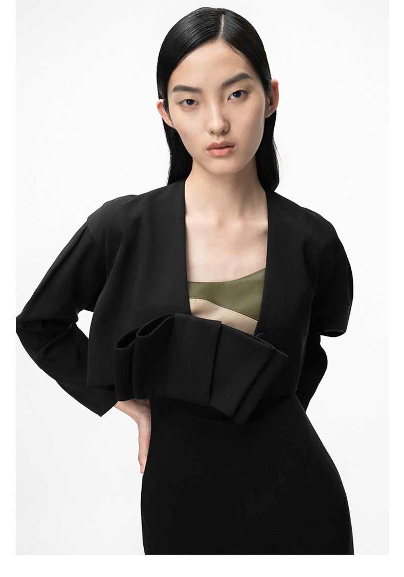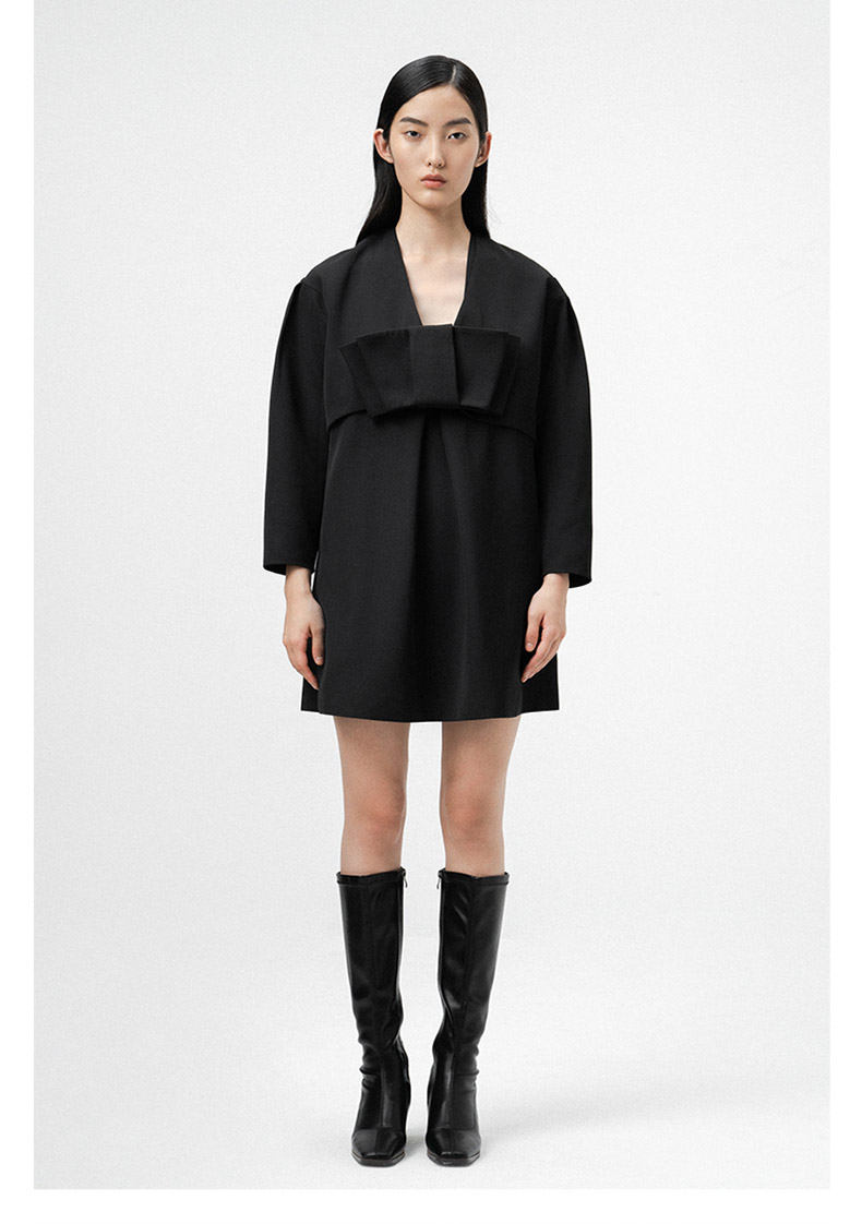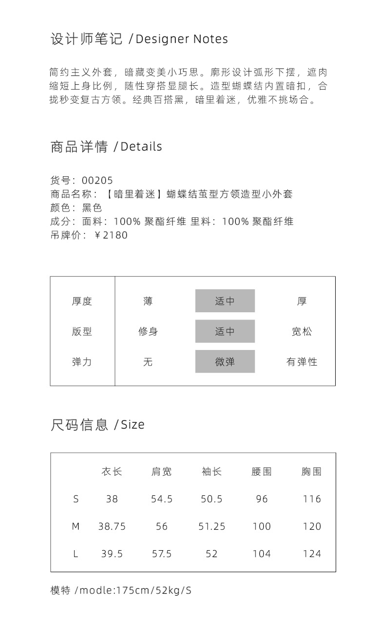 【暗里着迷】黑色蝴蝶结茧型方领造型小外套/00205