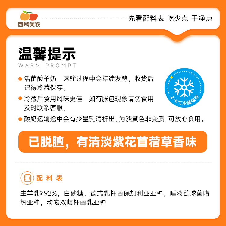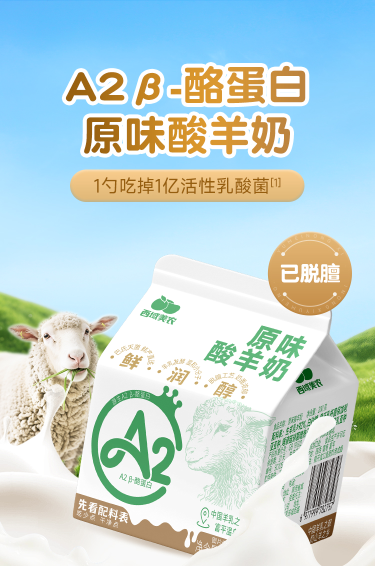 西域美农 原味酸羊奶 活菌酸羊奶 纯生羊乳发酵 配料干净 更好吸收 顺丰快递