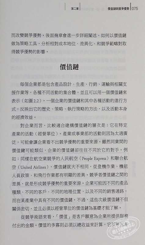 本書提供企業經理人,藉由成本或差異化創造競爭優勢的重要概念與實用工具。書中所提出的「價值鏈」概念更是強而有力的分析工具。它能夠協助經理人界定並分析研發、生產、行銷、銷售通路等方面,企業藉以形成競爭優勢的各種基本價值活動。