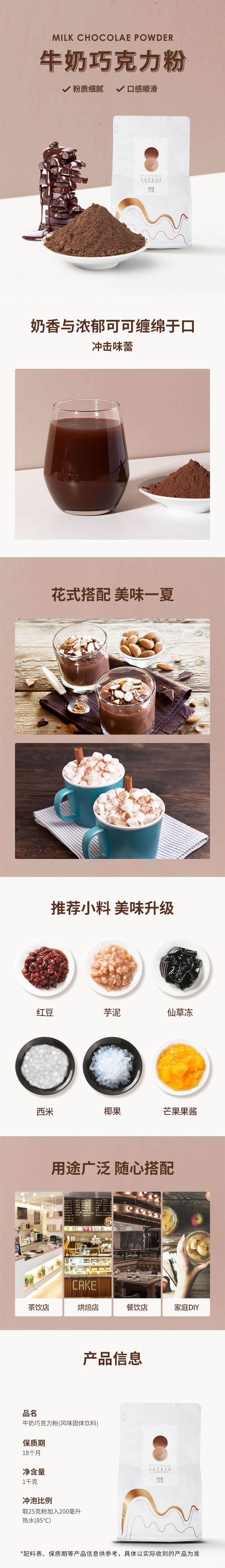 【12风味粉】牛奶巧克力粉1kg 蛋糕咖啡奶茶店烘焙材料