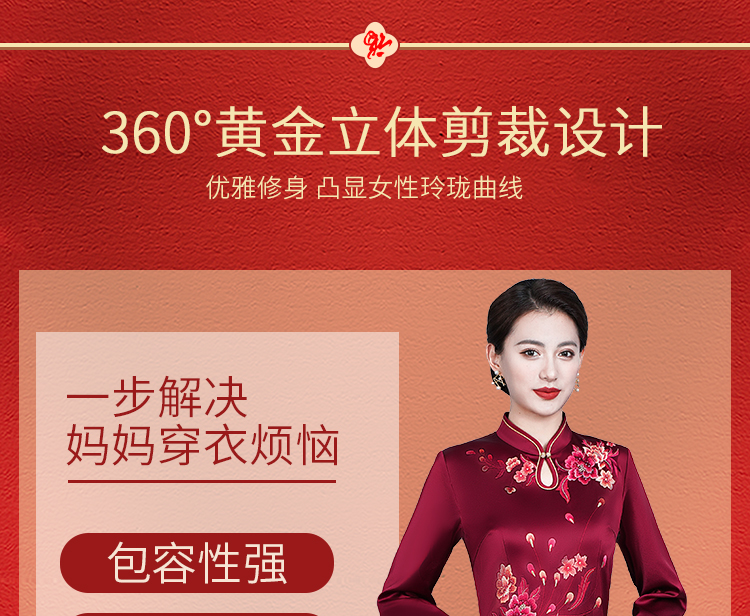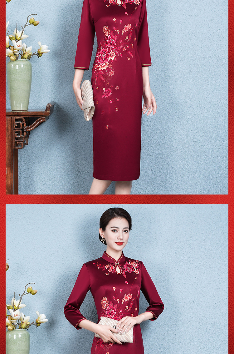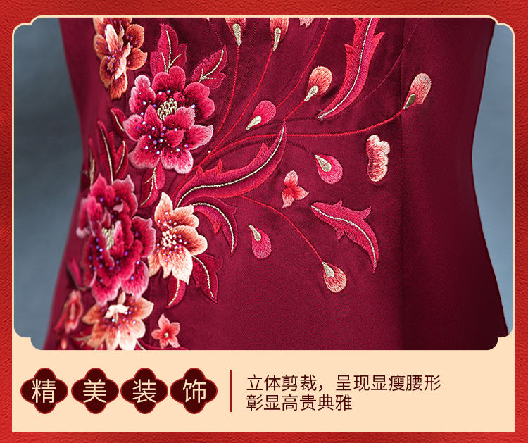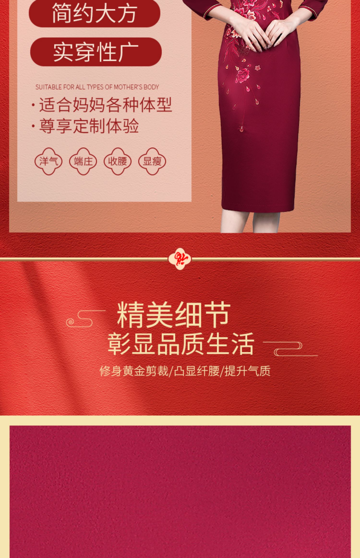 重工刺绣妈妈装结婚礼服,喜婆婆婚宴醋酸锻改良旗袍中长连衣裙QQX-8225