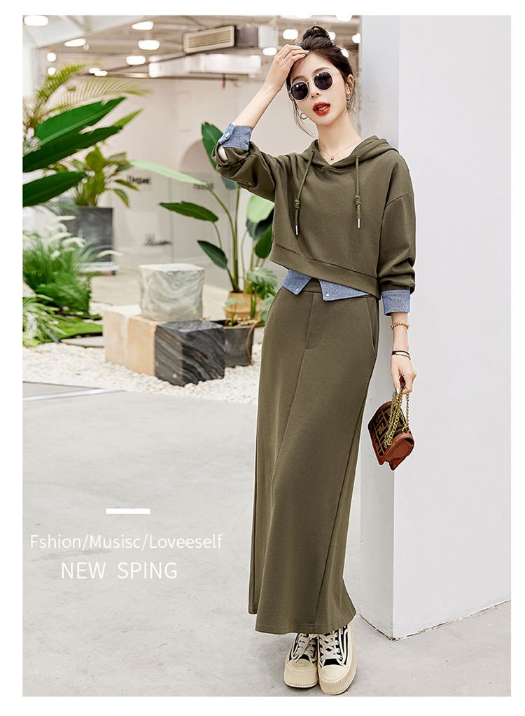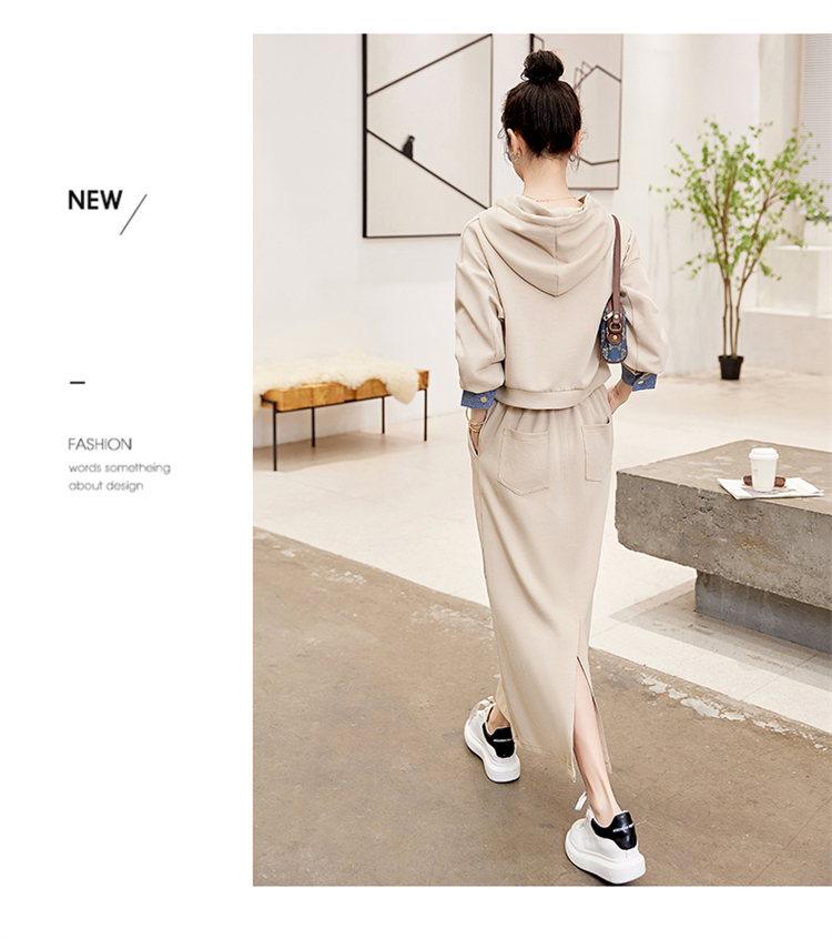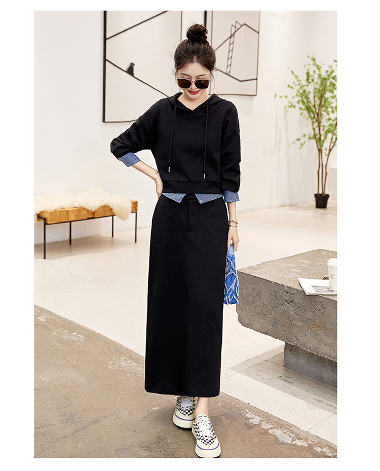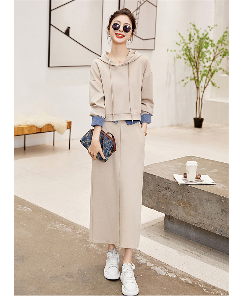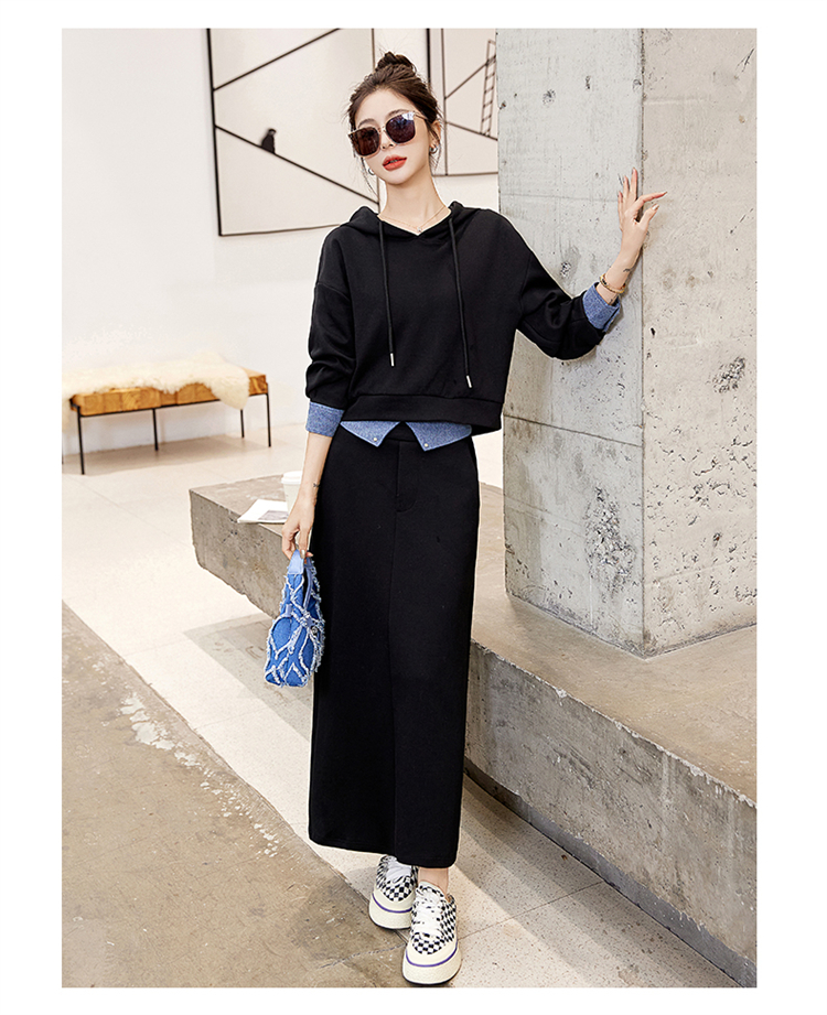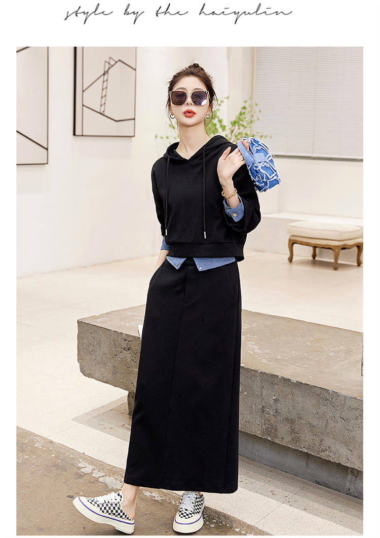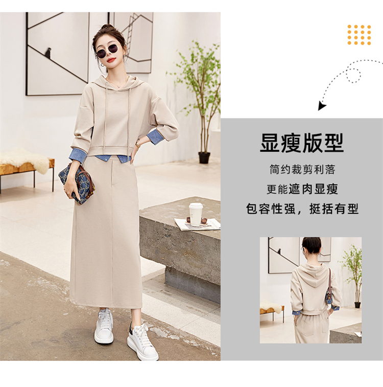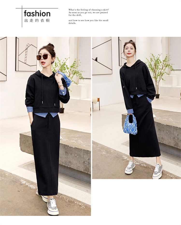 新款春装,牛仔拼接连帽卫衣两件套套装HR-CPYY2307-1