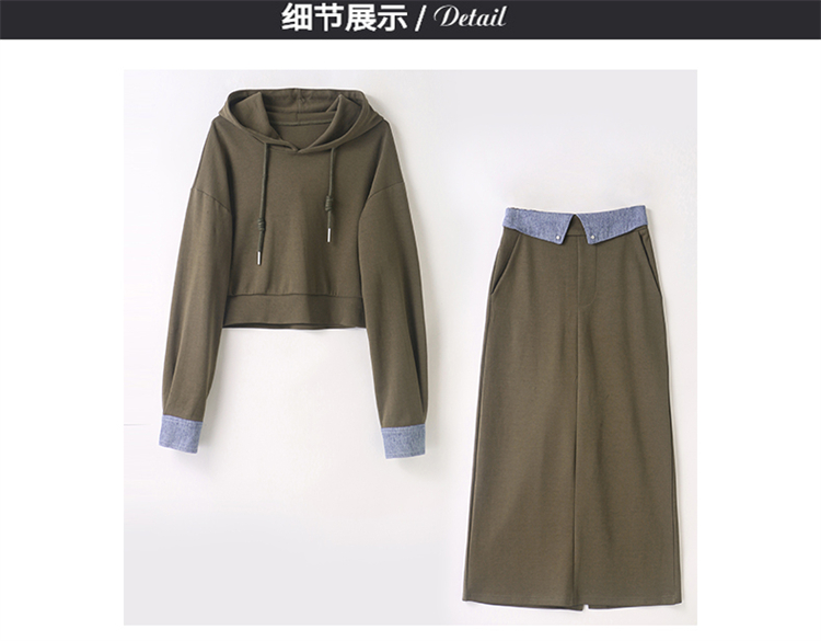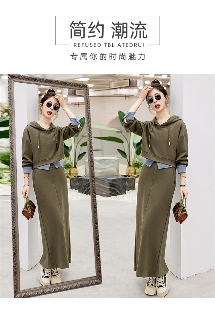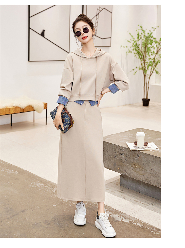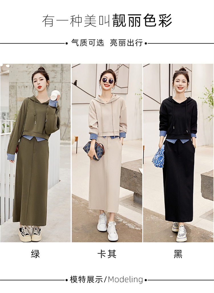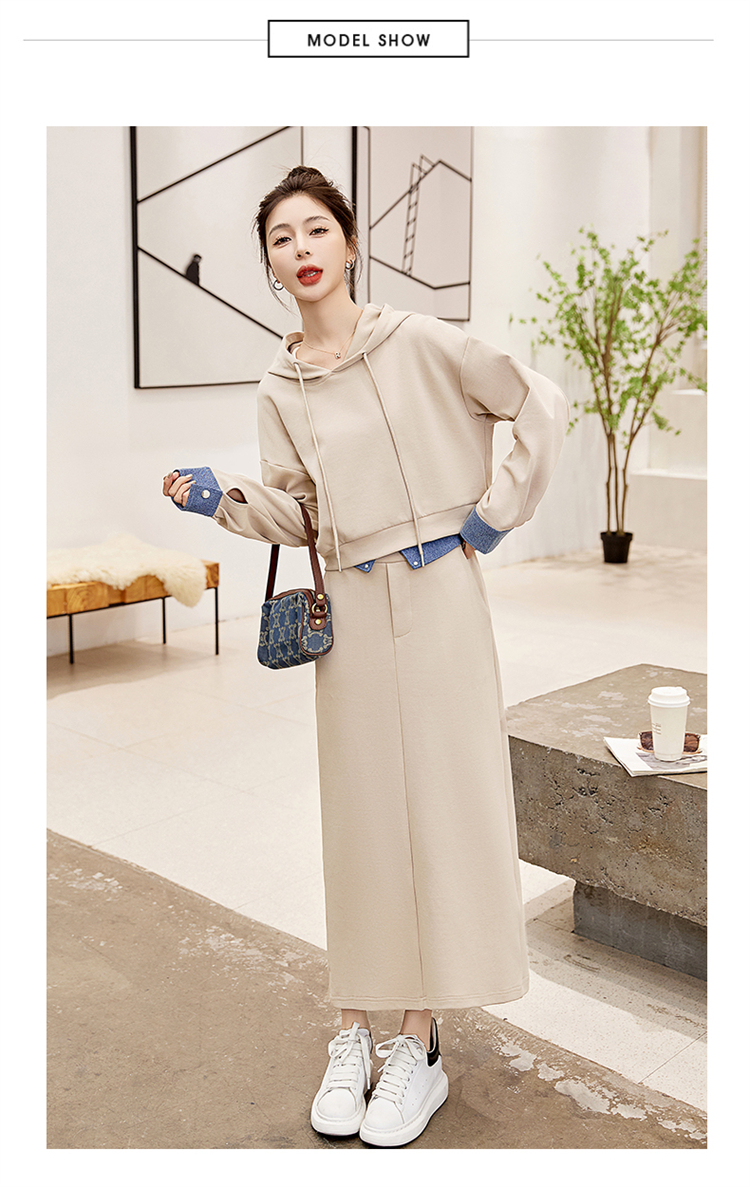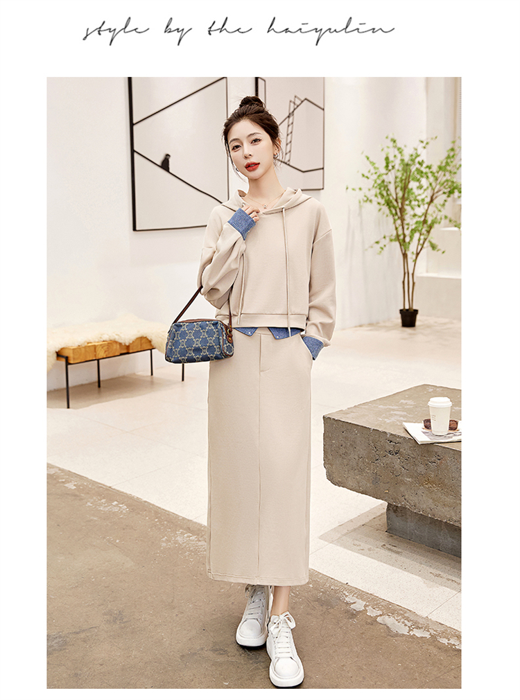 新款春装,牛仔拼接连帽卫衣两件套套装HR-CPYY2307-1