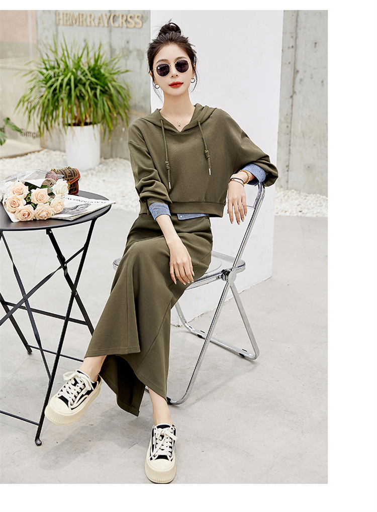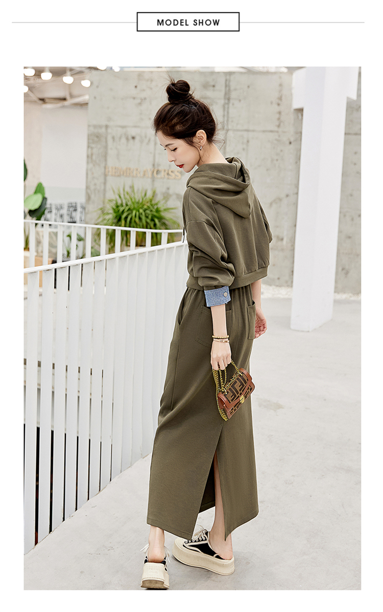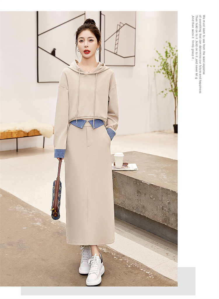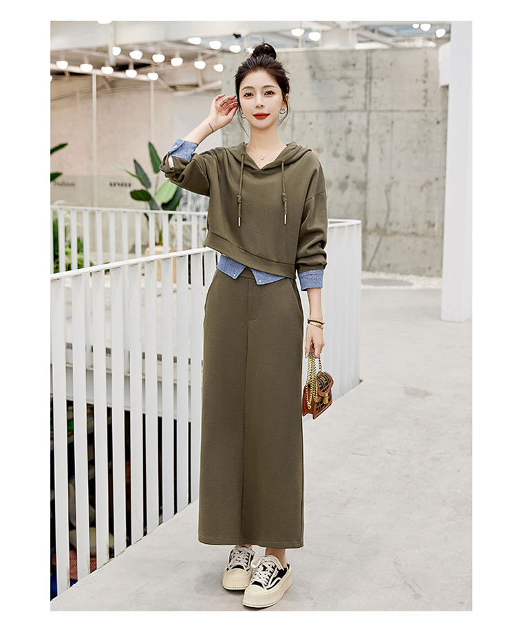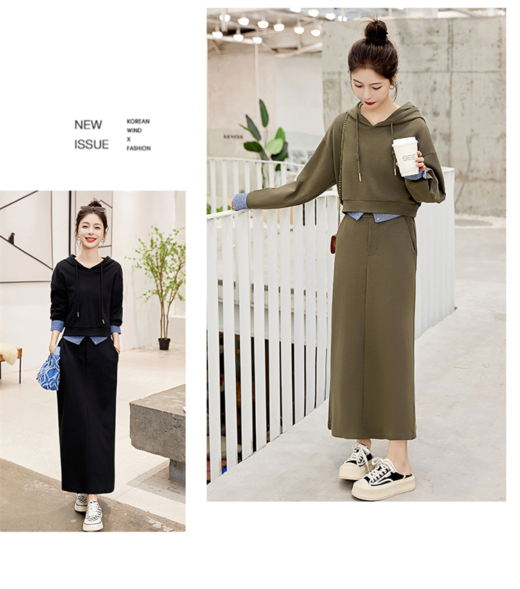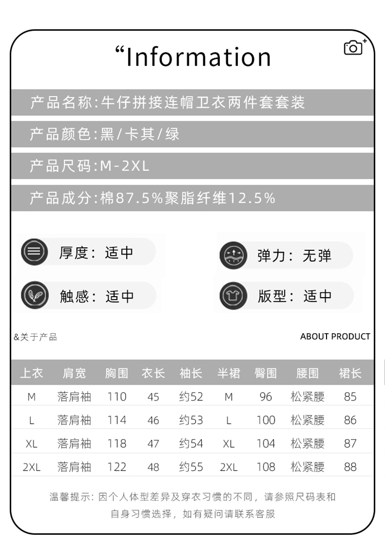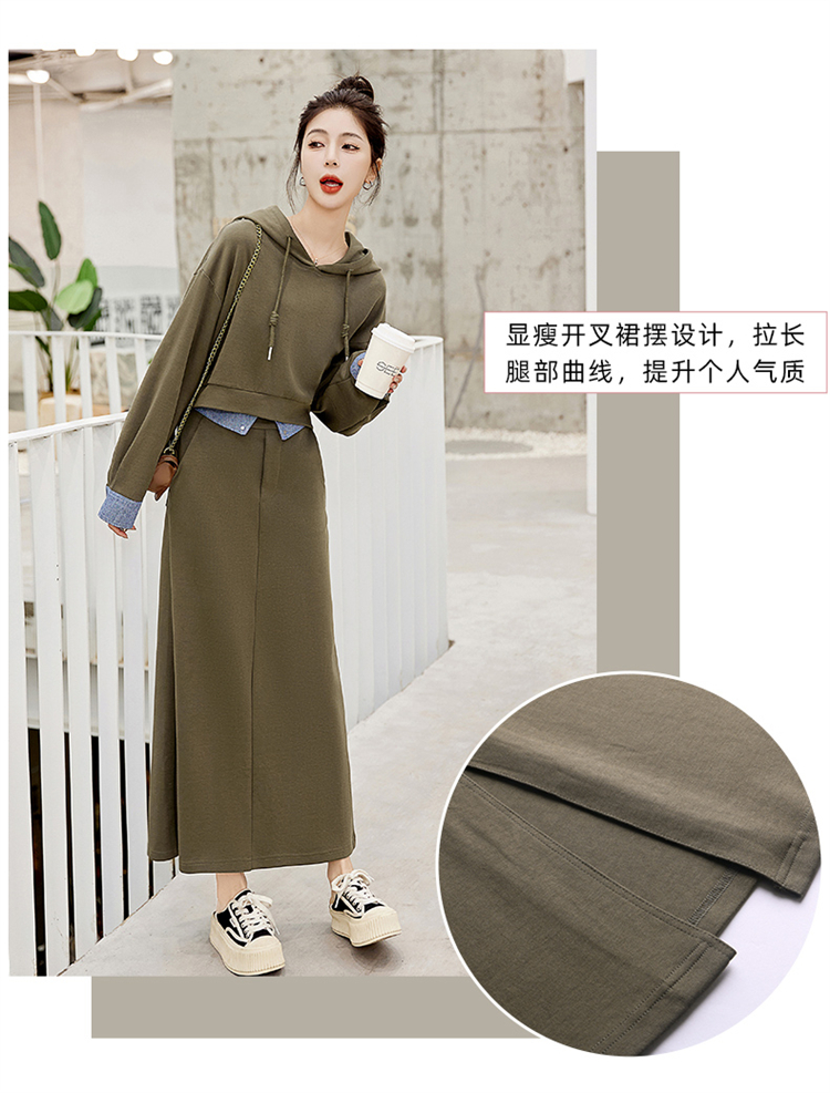 新款春装,牛仔拼接连帽卫衣两件套套装HR-CPYY2307-1