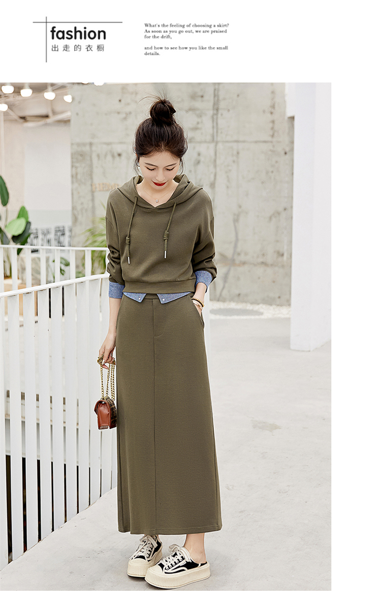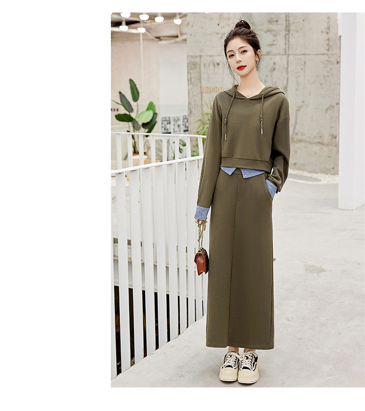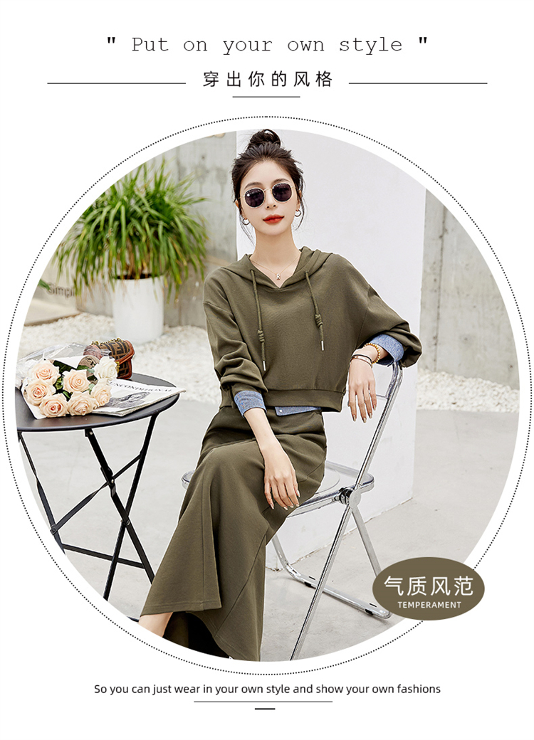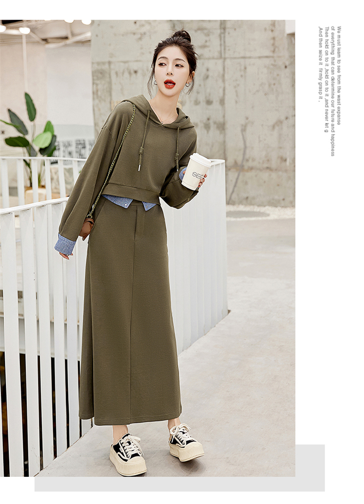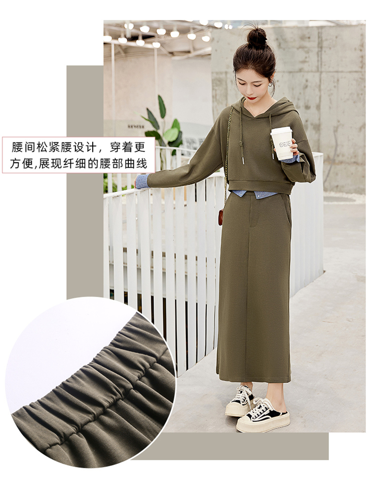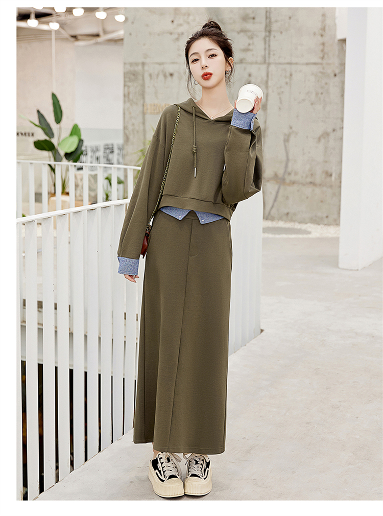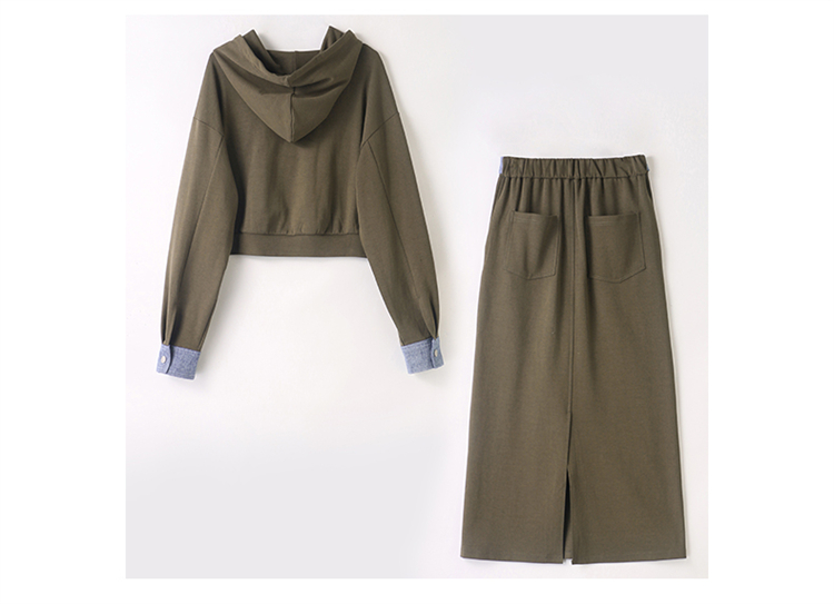 新款春装,牛仔拼接连帽卫衣两件套套装HR-CPYY2307-1