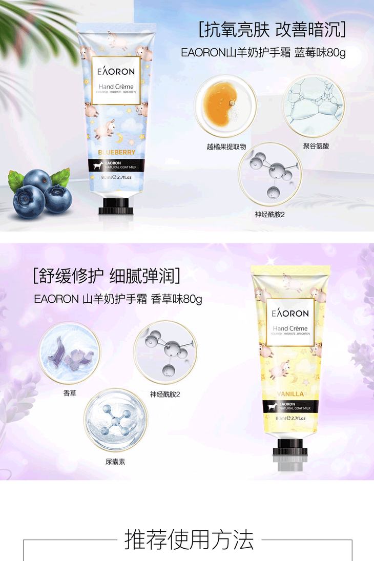 [3支/盒] 澳容EAORON山羊奶护手霜 滋润补水保湿不油腻防干裂80ml*3支