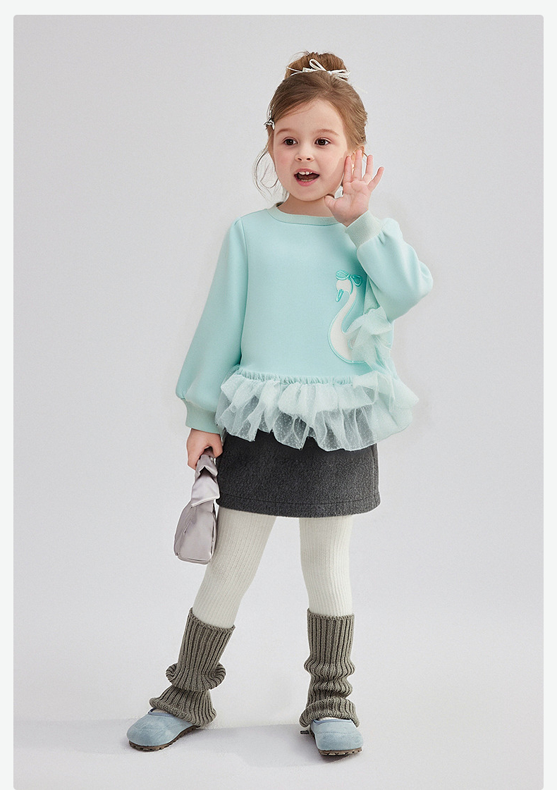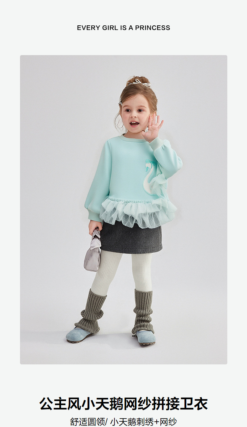 笛莎Deesha 童装女童卫衣2025冬新款女童公主风小天鹅网纱拼接卫衣
