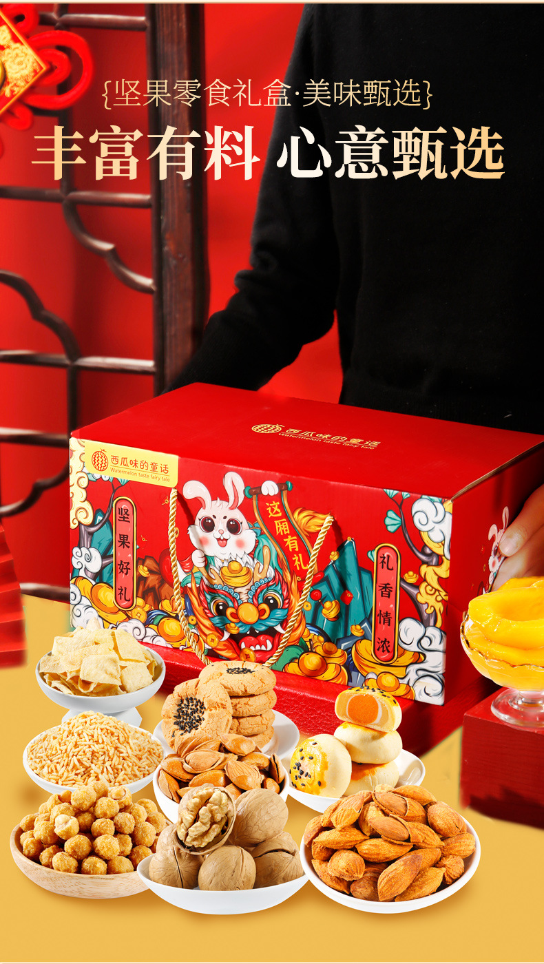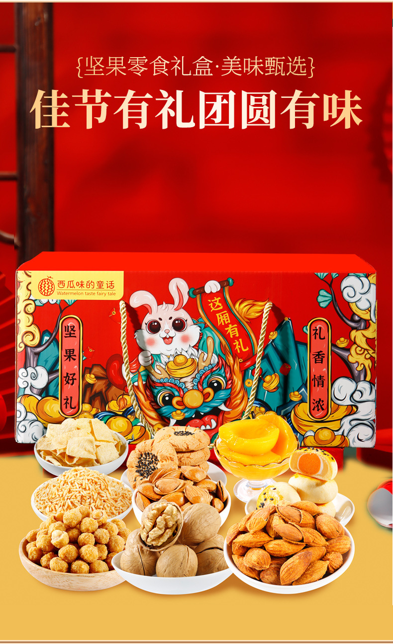 新年年货好礼【佳节有礼!团圆有味】坚果礼盒大礼包年货混合干果炒货休闲零食走亲戚送礼长辈。ry