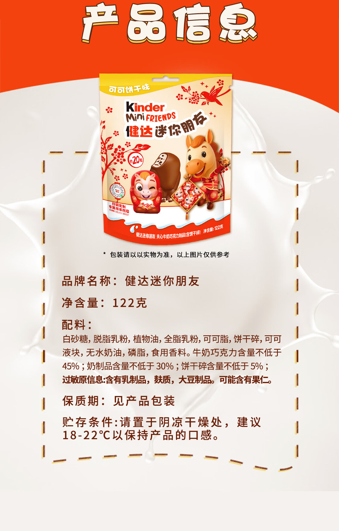 健达迷你朋友夹心牛奶巧克力20粒装122g