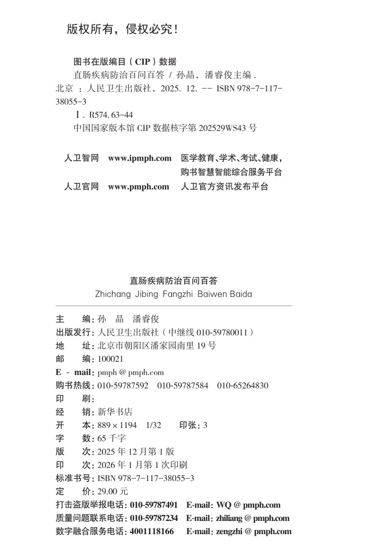 直肠疾病防治百问百答 疾病防治百问百答科普丛书100答问 孙晶 潘睿俊 涵盖疾病的成因 症状 诊断 治疗及预防方法 人民卫生出版社