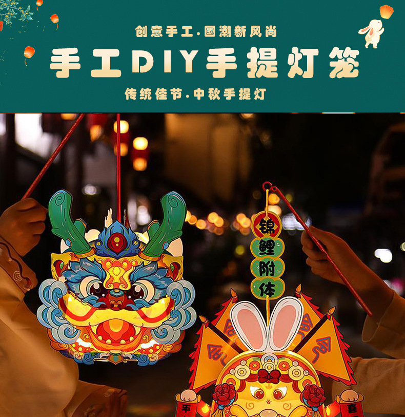 【传统佳节!中秋手提灯】中秋节灯笼投影国潮兔爷发光儿童手提立体花灯手工diy材料包宫灯,光影如画,给孩子的影子戏法。ry