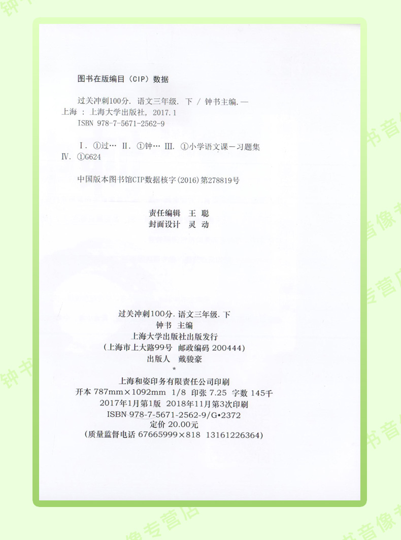 钟书金牌 过关冲刺100分 部编版语文 3年级下册/三年级第二学期 上海小学教材教辅同步配套试卷月考单元测试卷期中期末满分冲刺卷