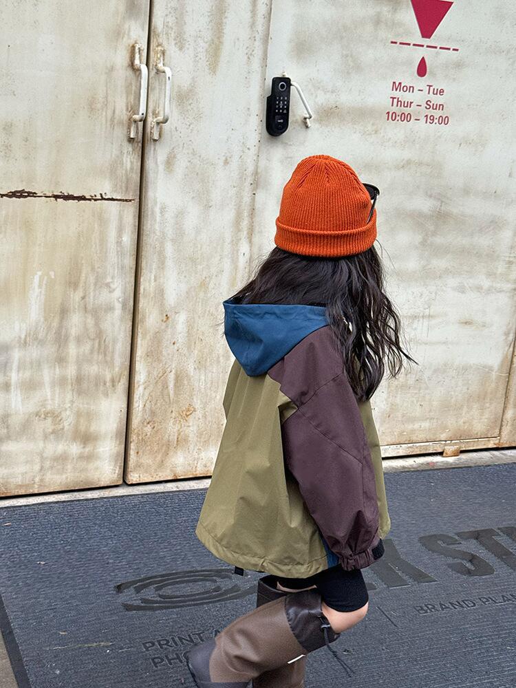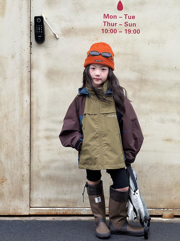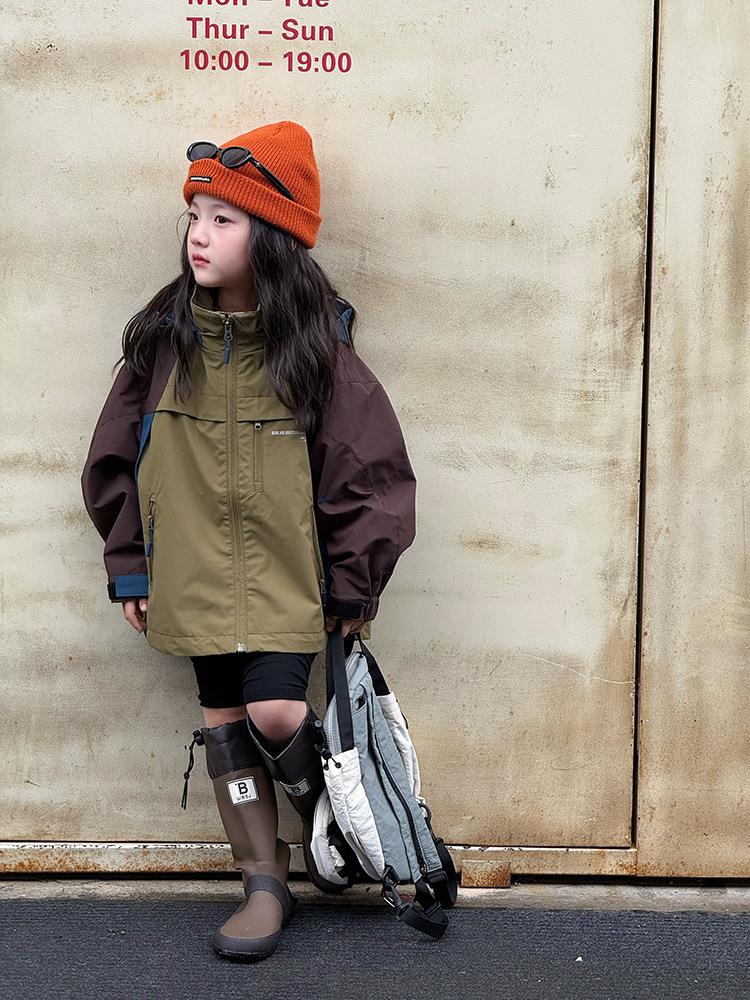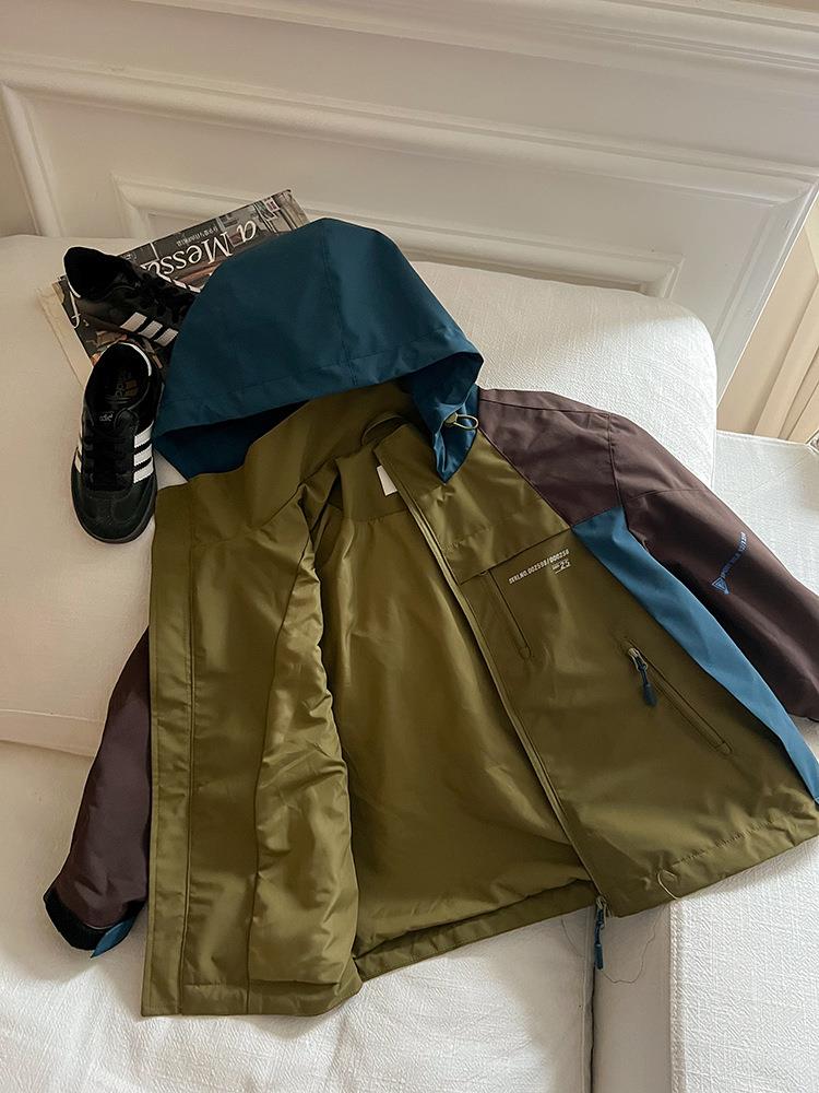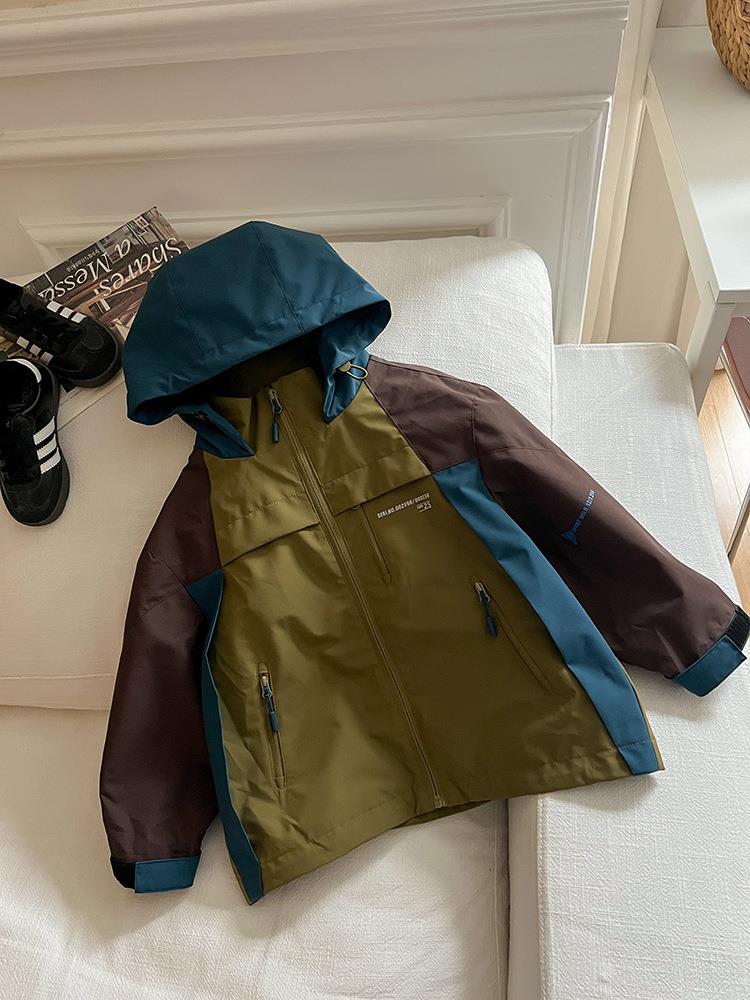 艾摩贝贝儿童三防面料山系冲锋衣男女童韩版宽松洋气撞色户外休闲连帽外套