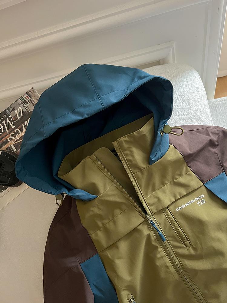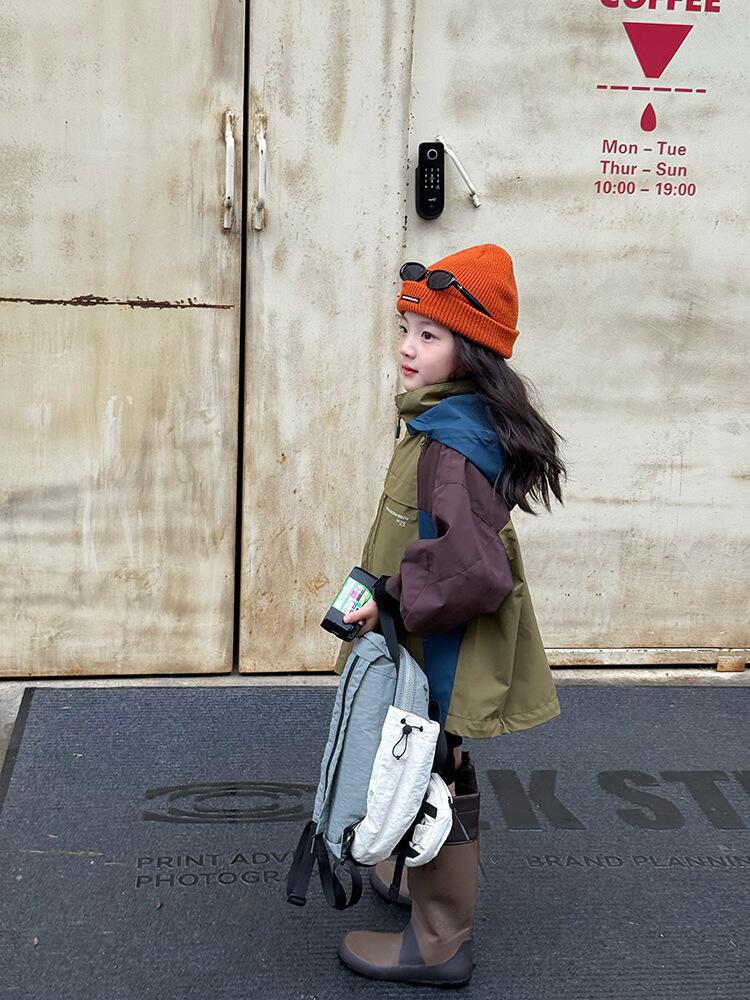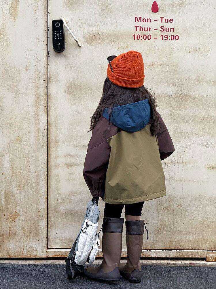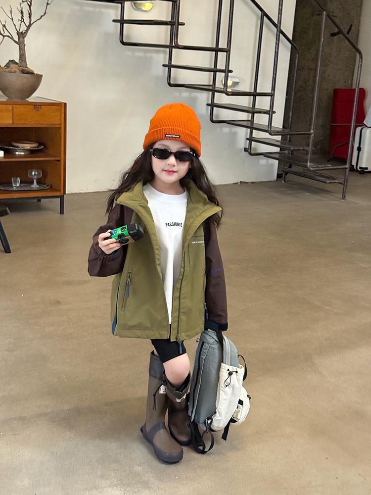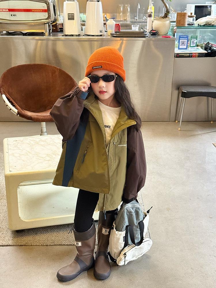 艾摩贝贝儿童三防面料山系冲锋衣男女童韩版宽松洋气撞色户外休闲连帽外套