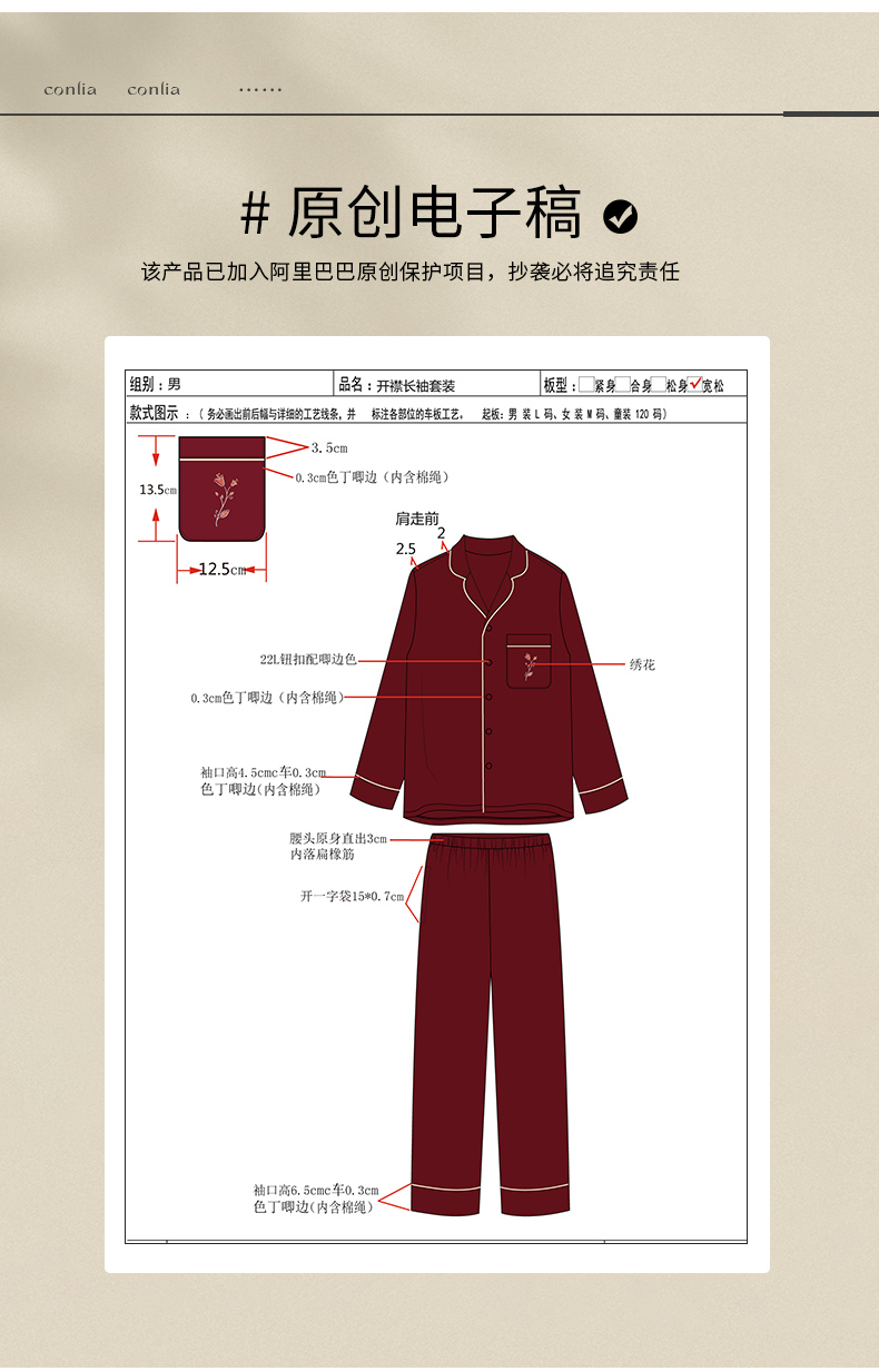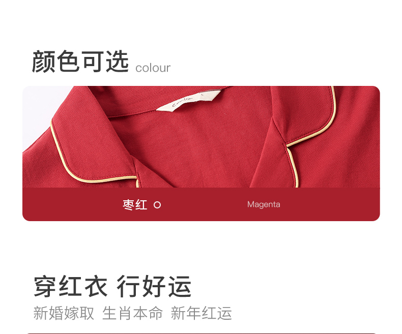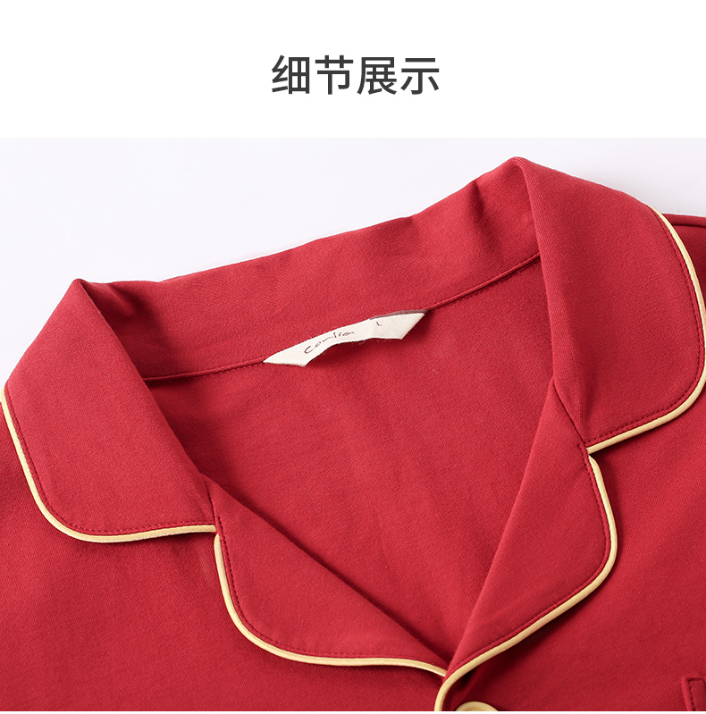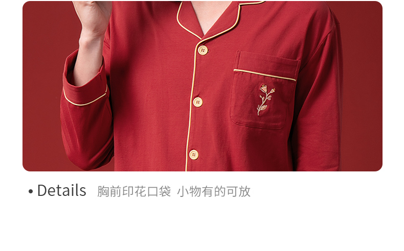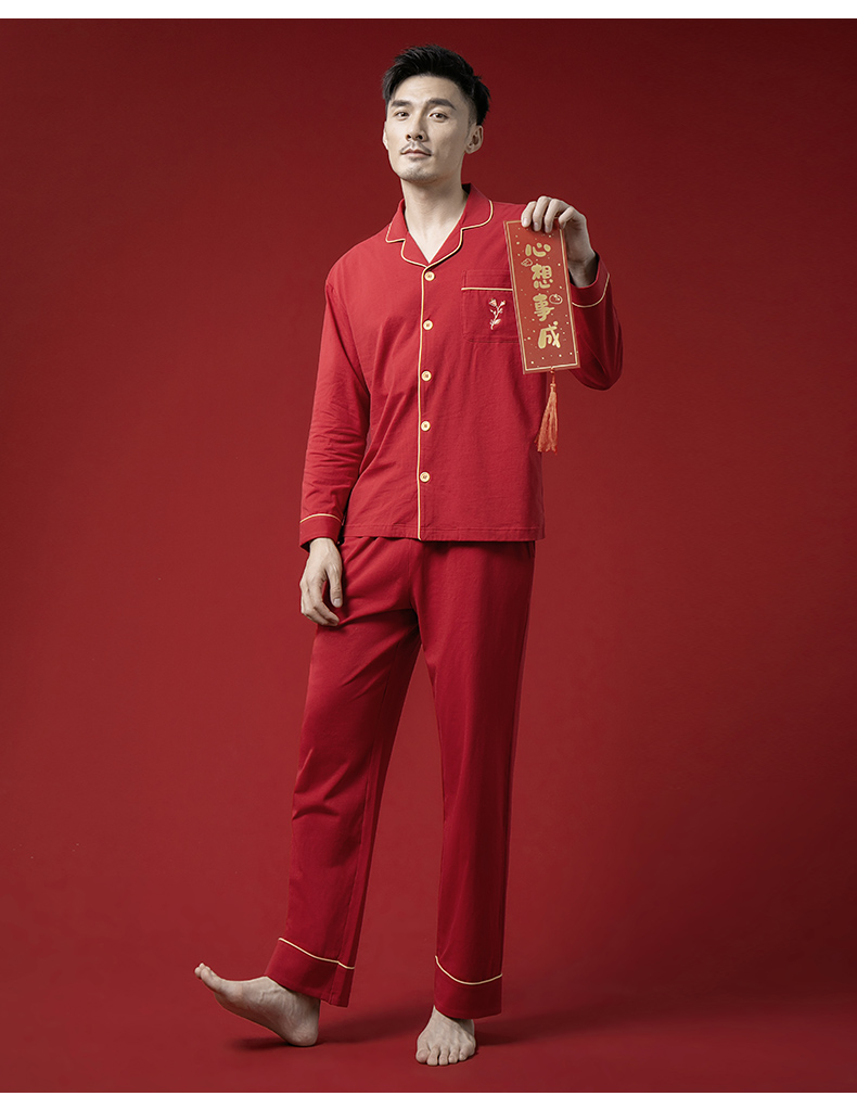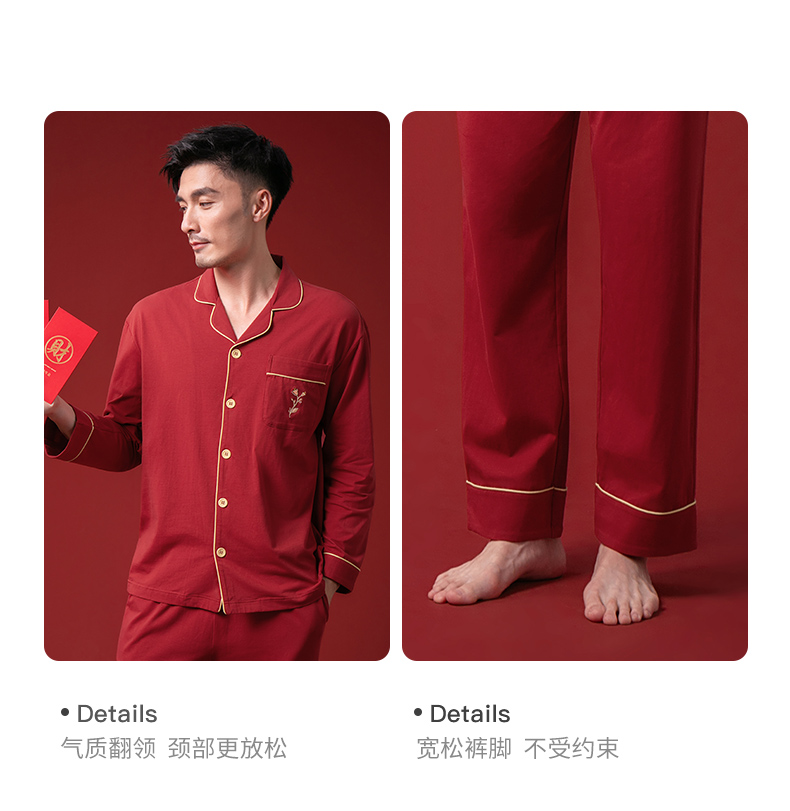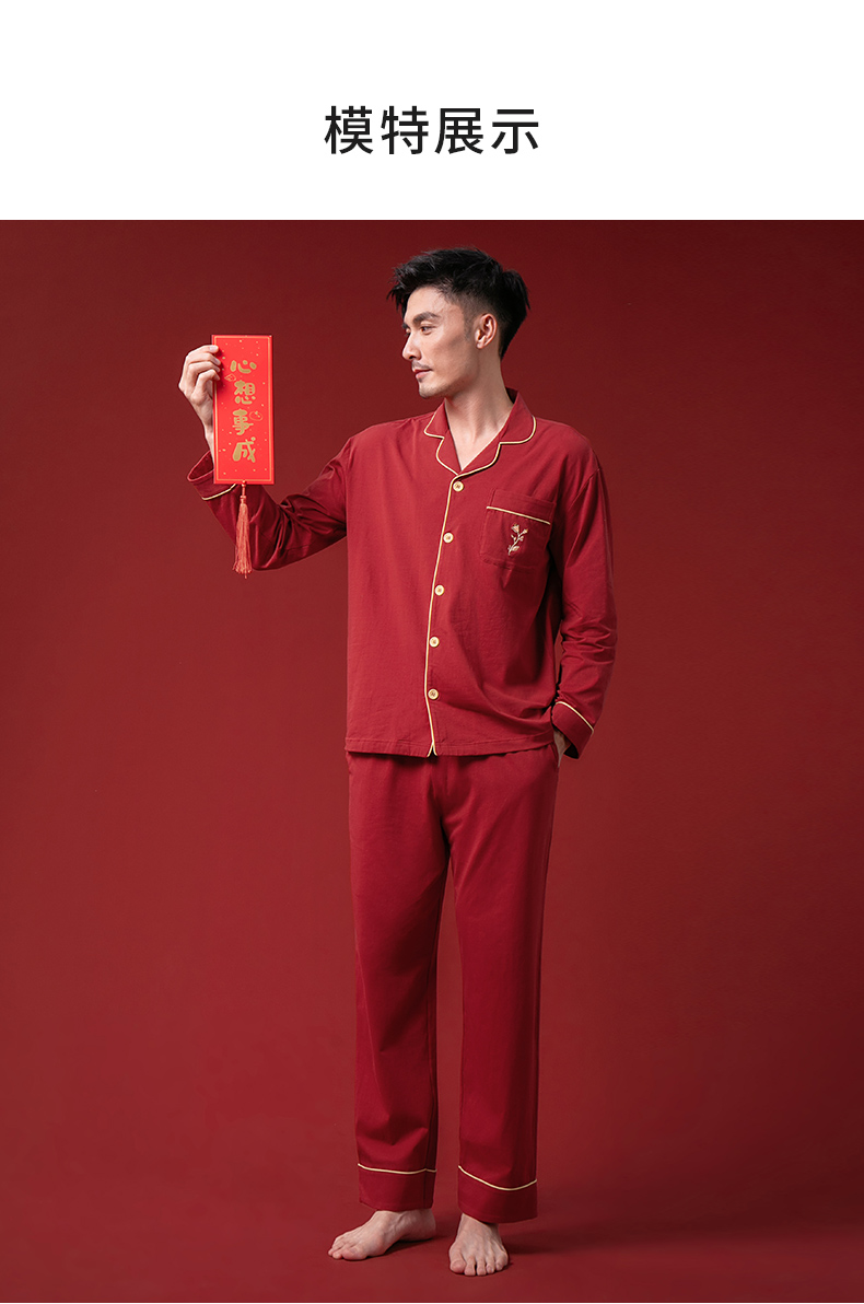 康妮雅睡衣家居服 男式长袖长裤开襟套装*枣红