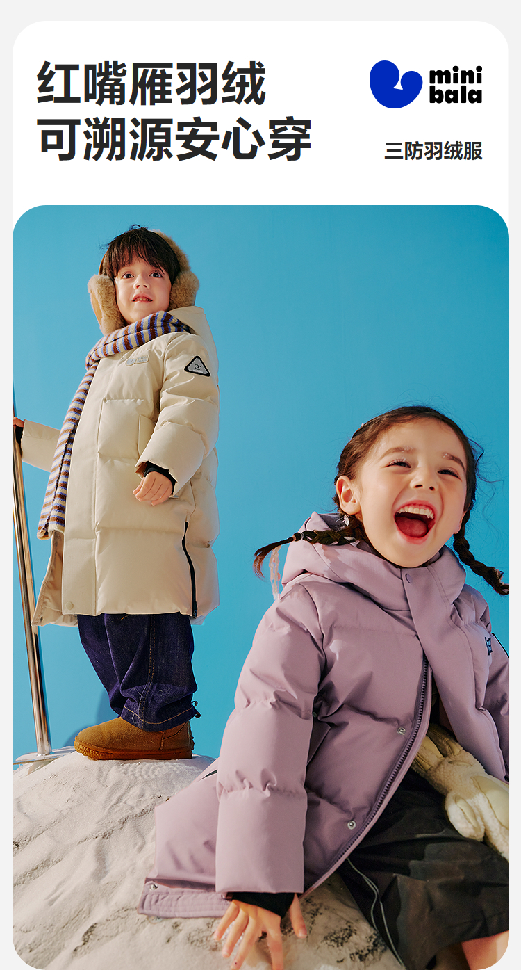 [三防]迷你巴拉男女童儿童羽绒服宝宝长款羽绒外套2025冬新品