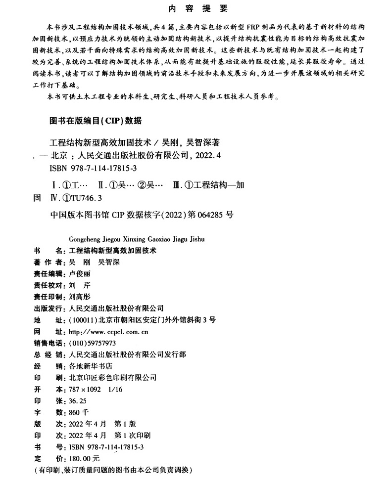 书名:工程结构新型高效加固技术