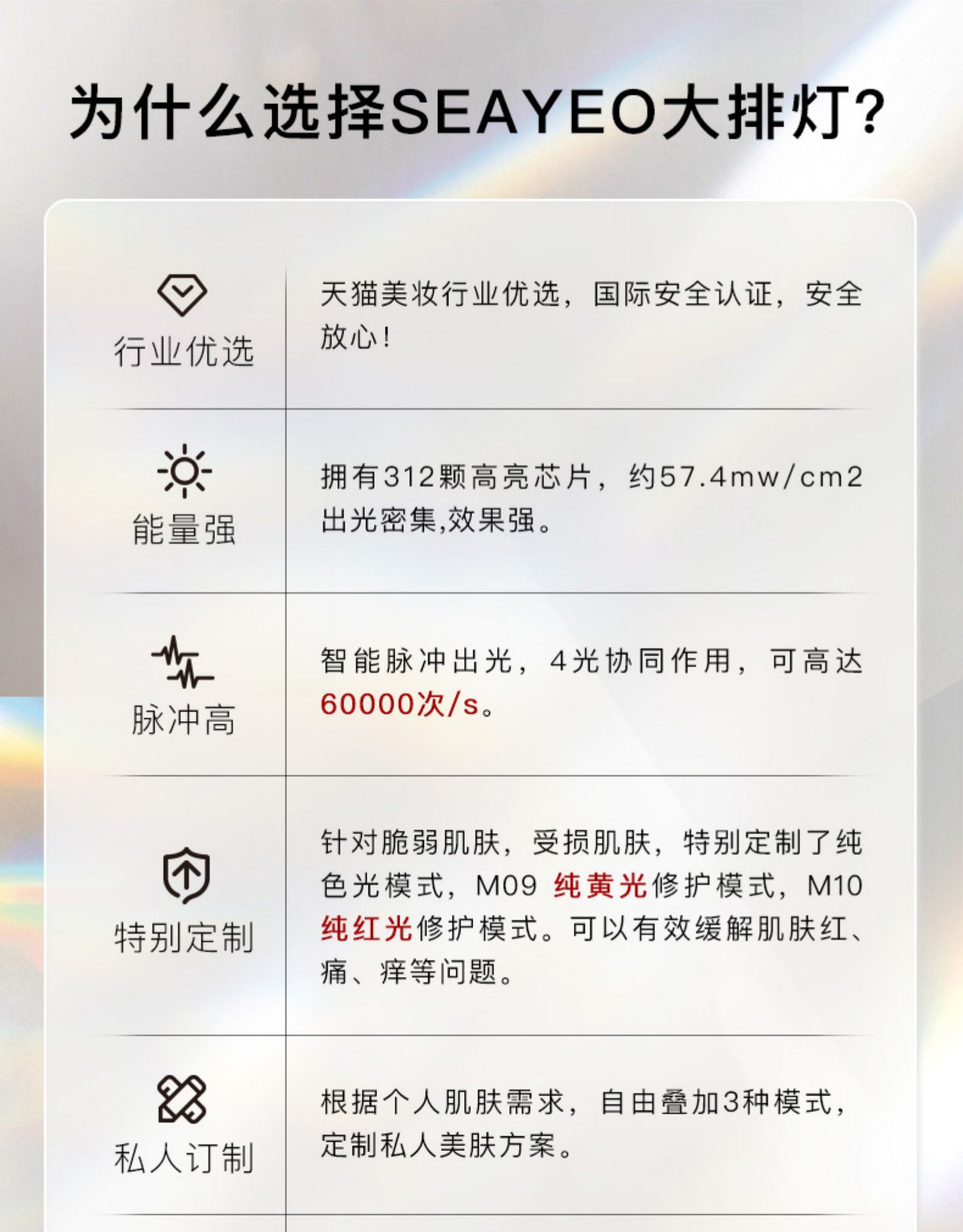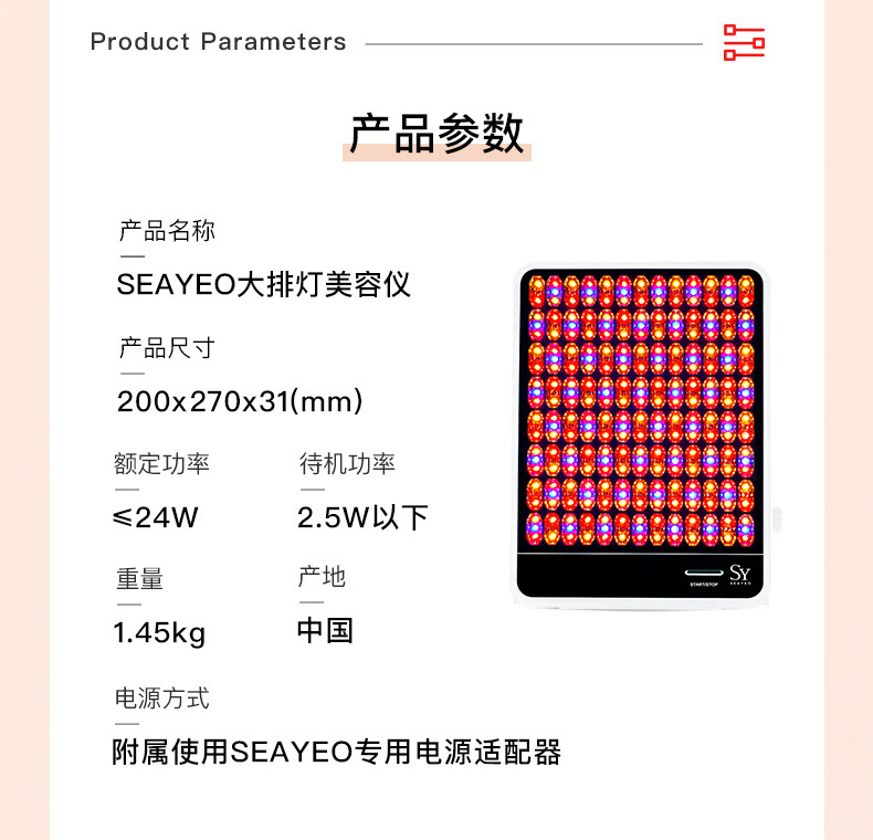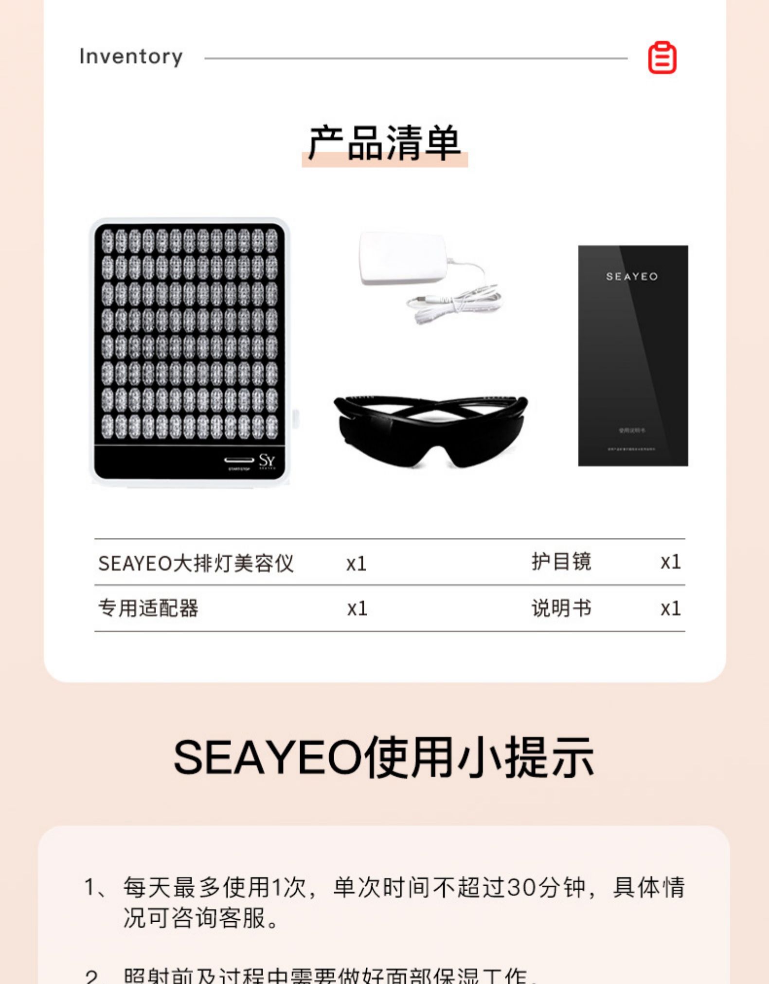 SEAYEO 大排灯美容仪家用脸部祛痘光子嫩肤仪面部红光面罩光谱仪器