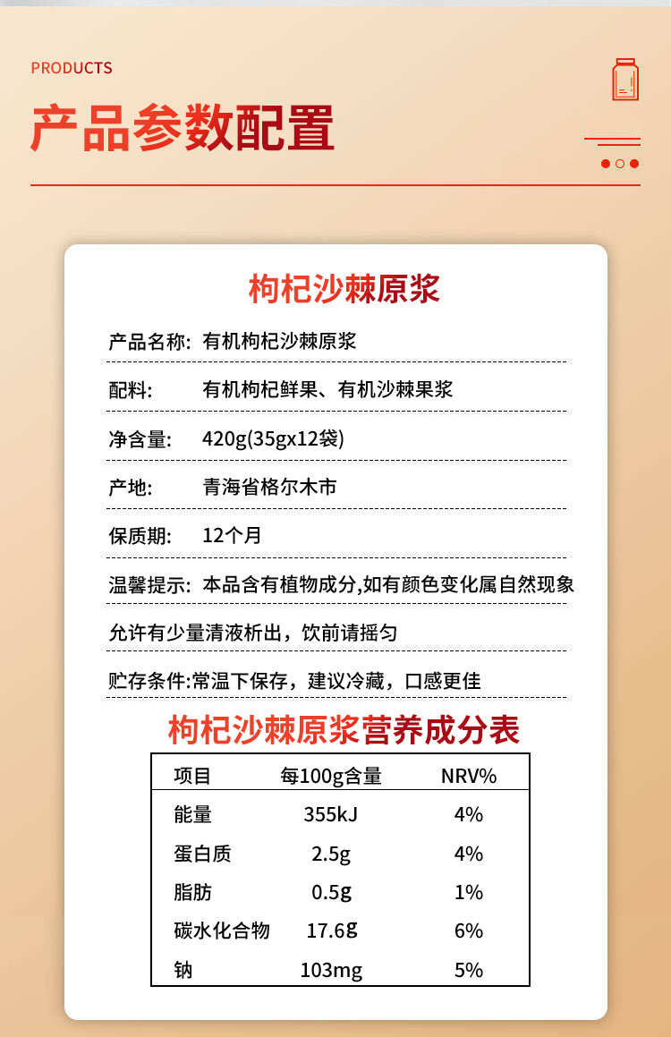 高原有机枸杞沙棘原浆 35g*12袋/盒