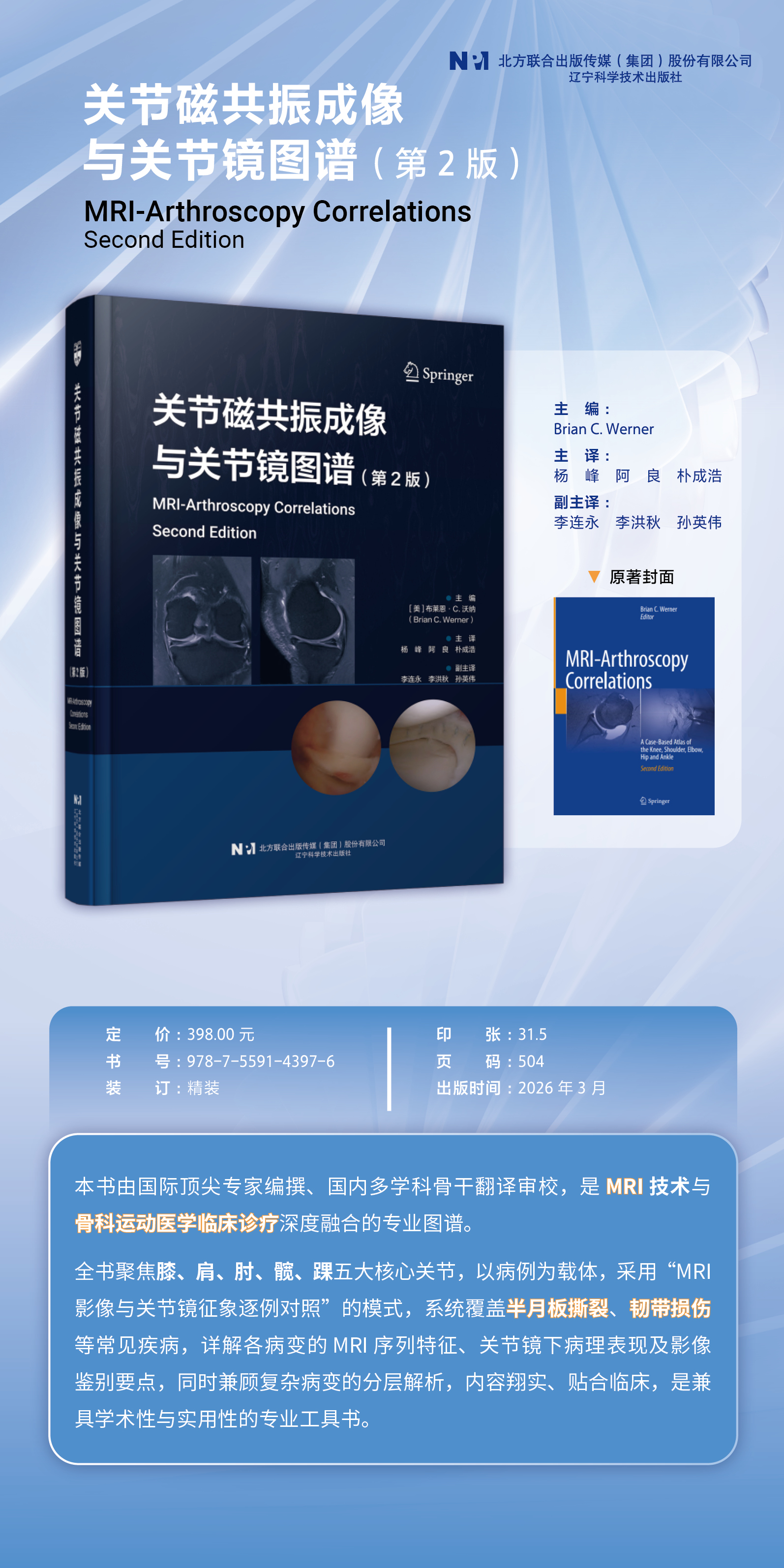 现货 48小时内发货《关节磁共振成像与关节1镜图谱 第2版》