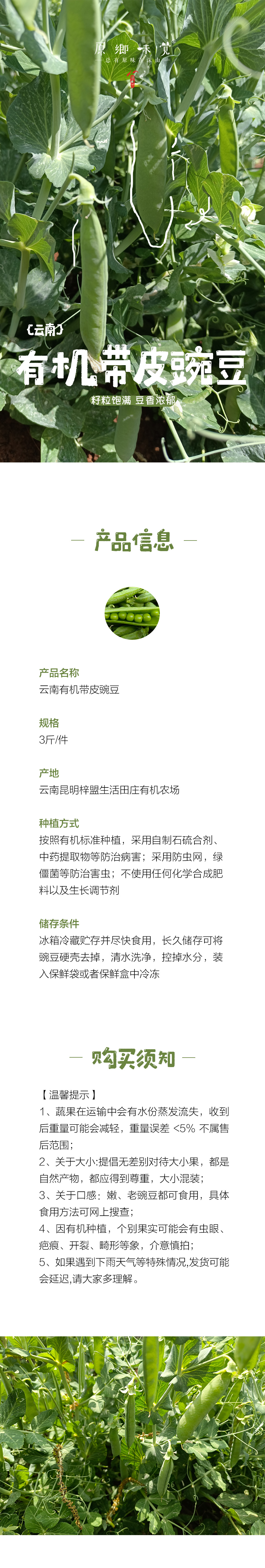 云南有机带皮豌豆(基地直发-顺丰包邮)| 3斤/件,来自云南昆明,生产者:李建平【合作生产,公平贸易】