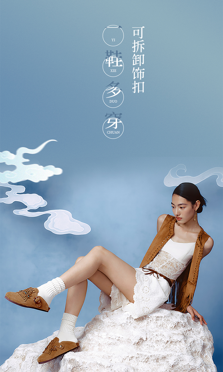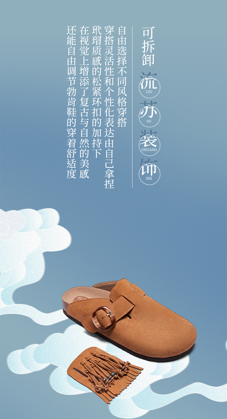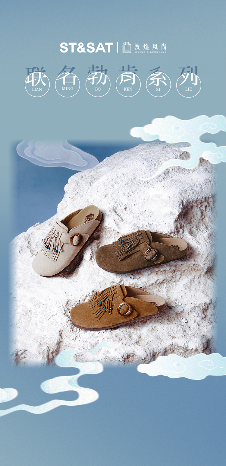 ST&SATx敦煌风尚联名 复古民族风流苏勃肯鞋SSC3114050