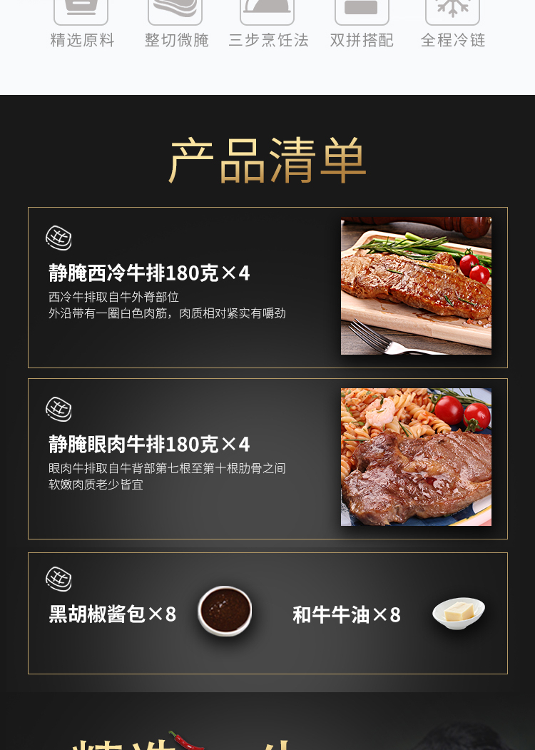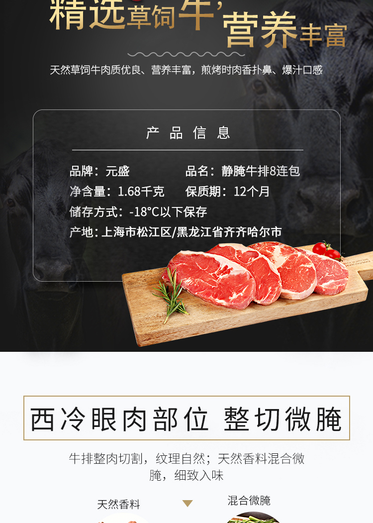 元盛 整切静腌西冷眼肉牛排套装(1.68kg/盒8片内含酱包和牛牛油)西冷眼肉牛扒 牛肉生鲜