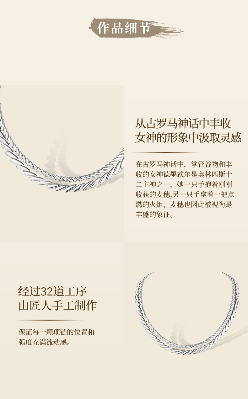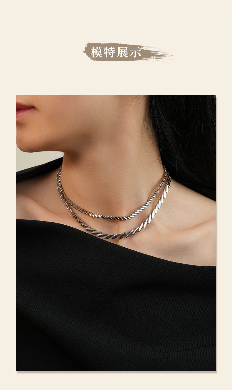 【孙怡&刘忻&惠英红&程潇&侯佩岑&歌手陈粒同款】Retro Chic 意大利复古时尚首饰 银色麦穗项链