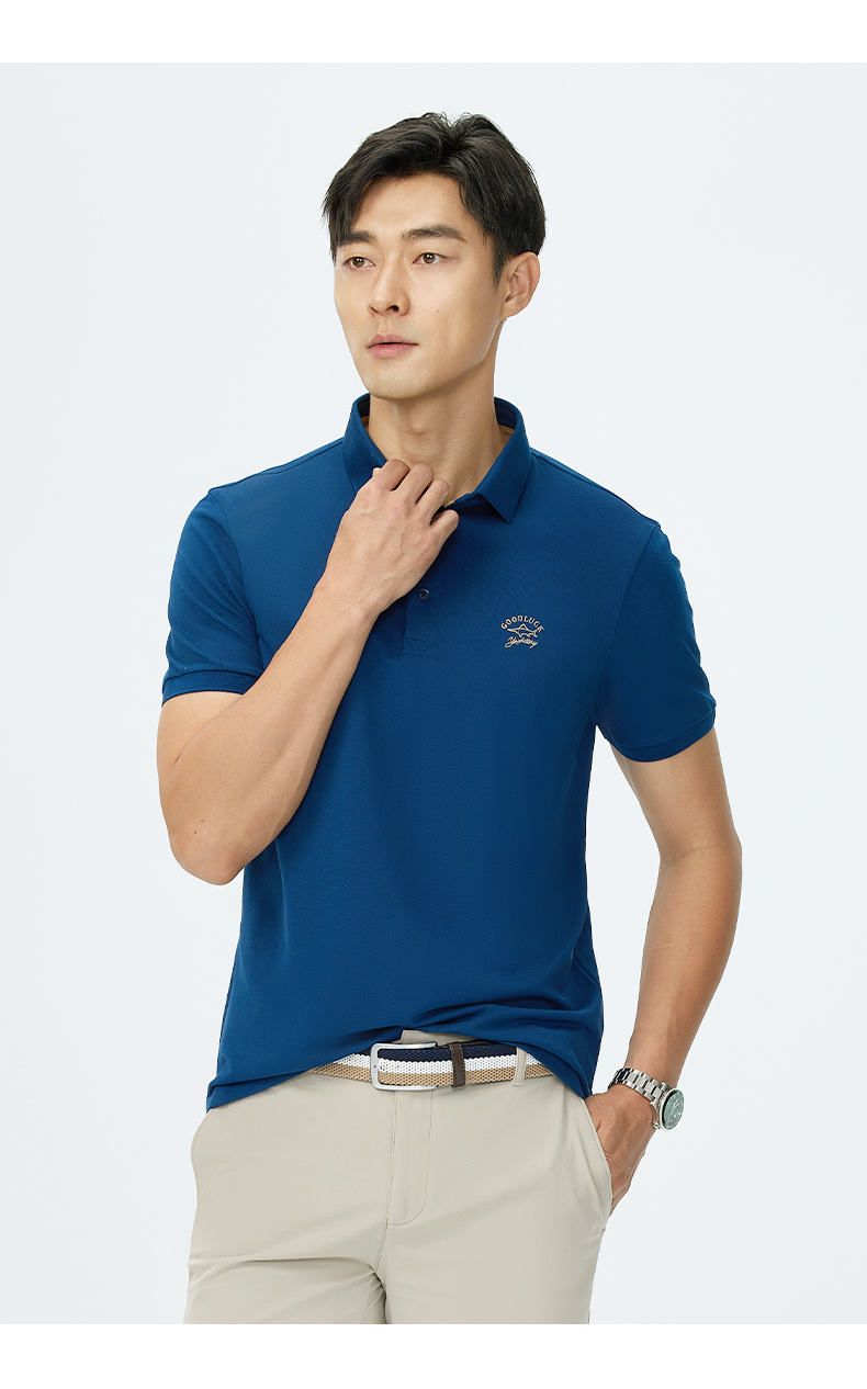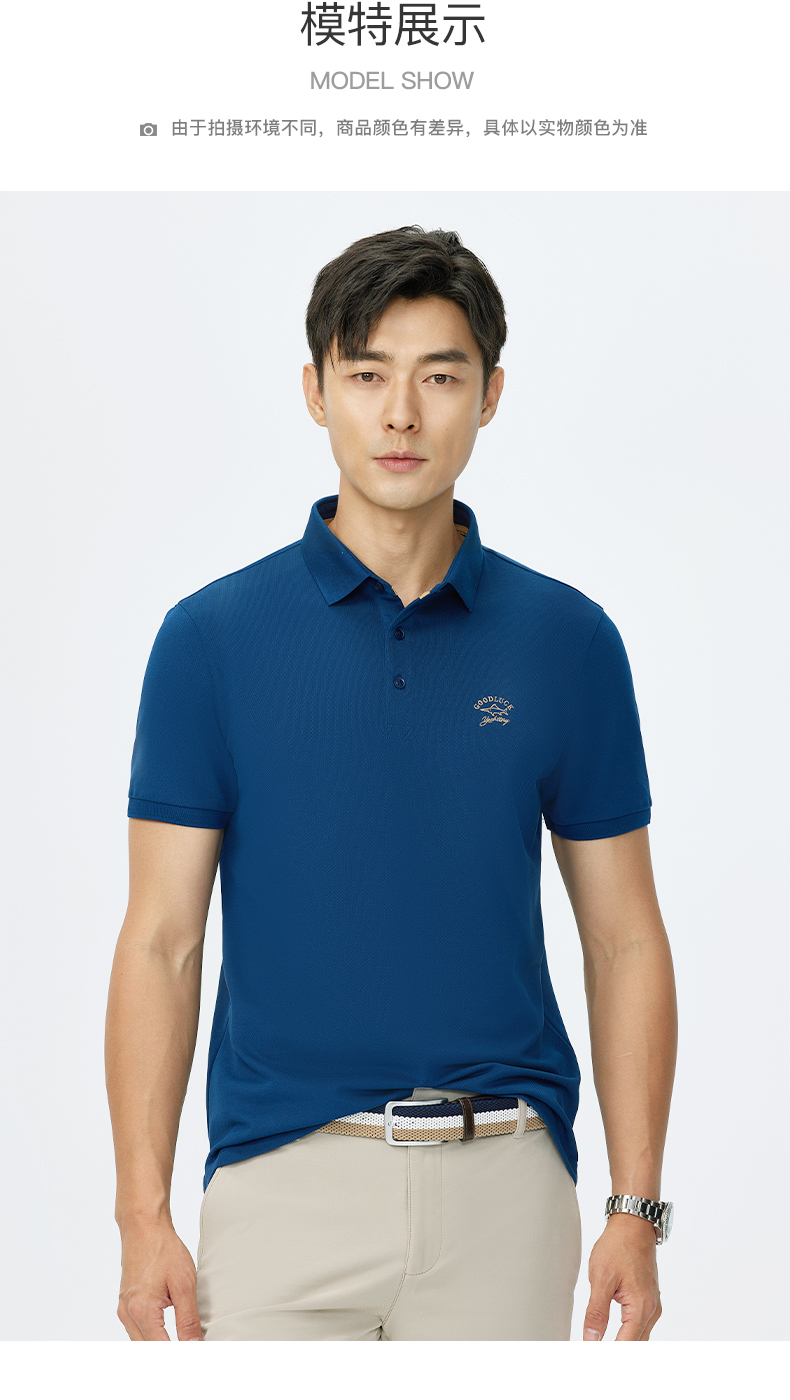 德鲨男装短袖POLO衫2025夏季新款纯色翻领休闲打底上衣T恤