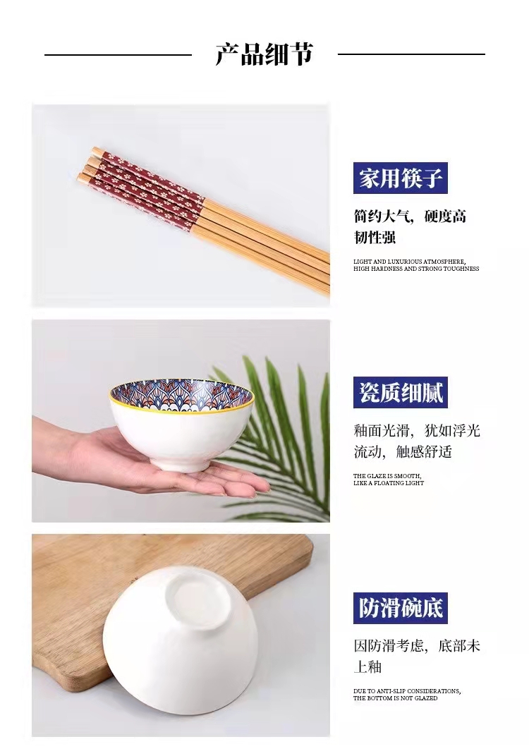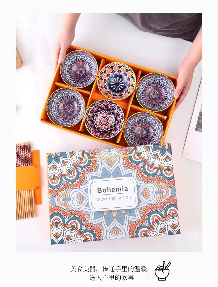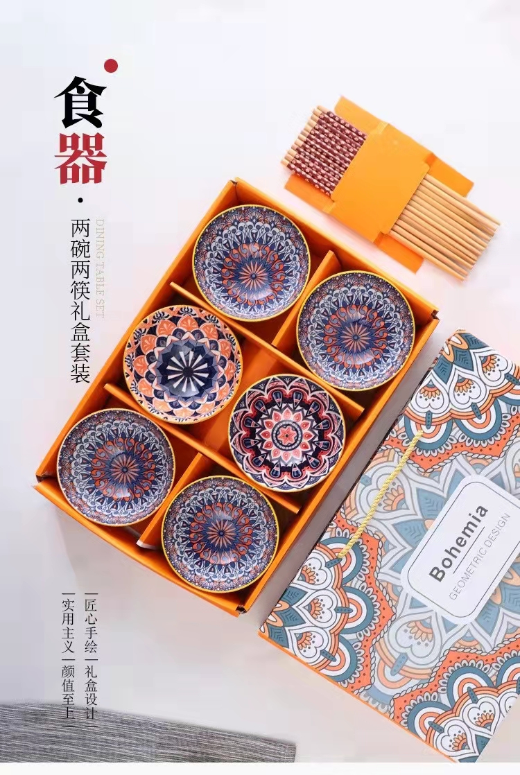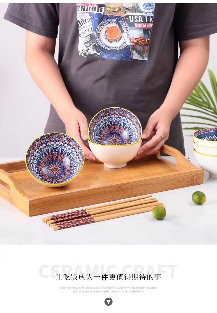 新款创意波西米亚礼品陶瓷碗筷套装批碗碟套装家用饭碗餐具套碗礼