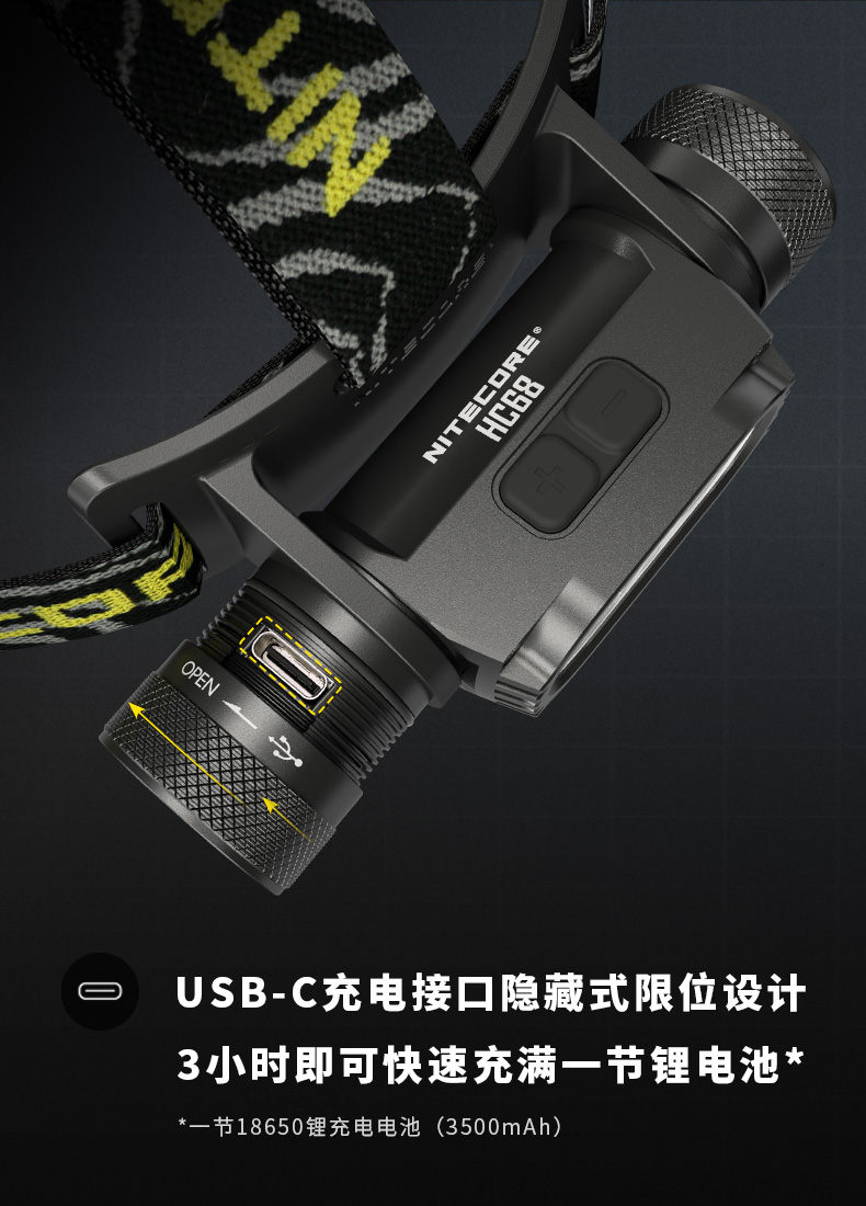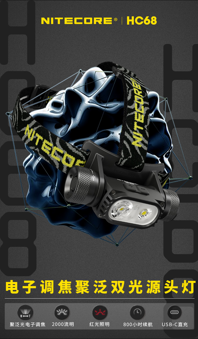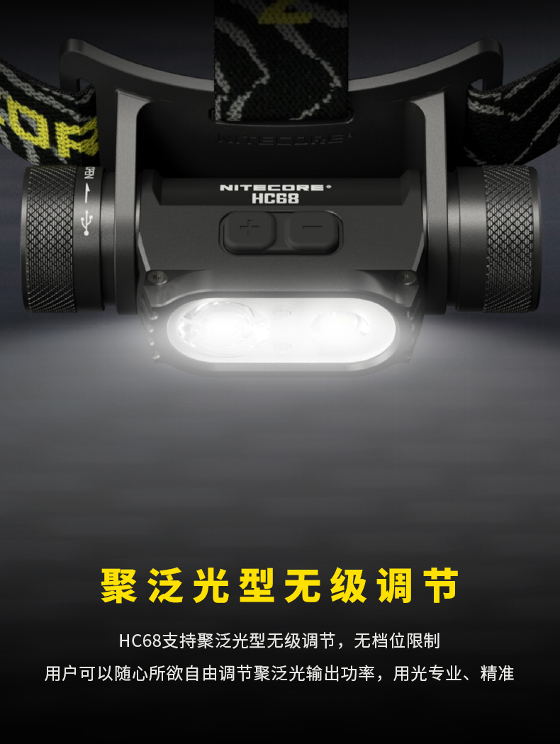 NITECORE奈特科尔HC68强光高亮USB充电18650锂电池金属聚泛光调焦双光源头灯