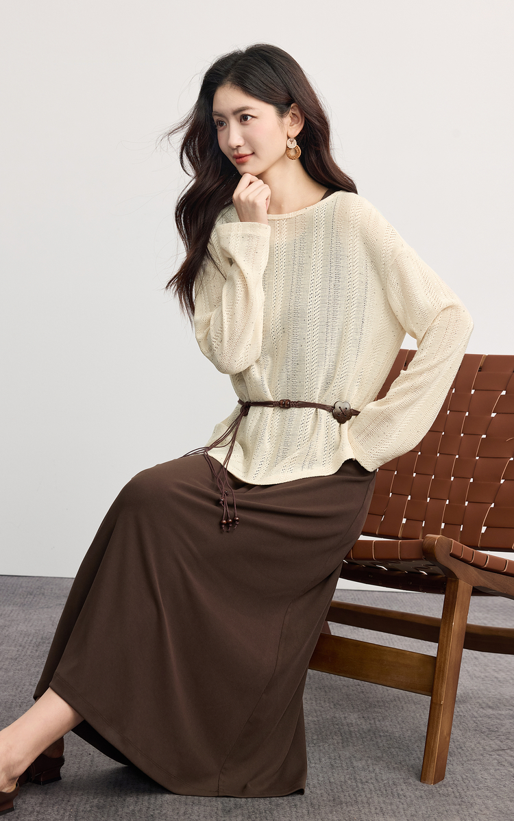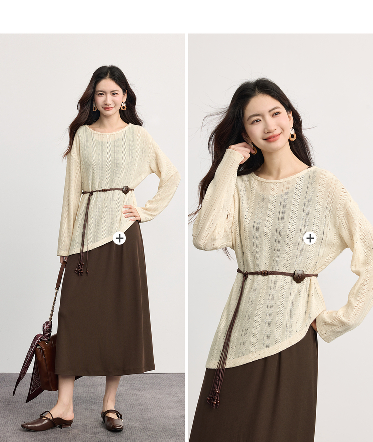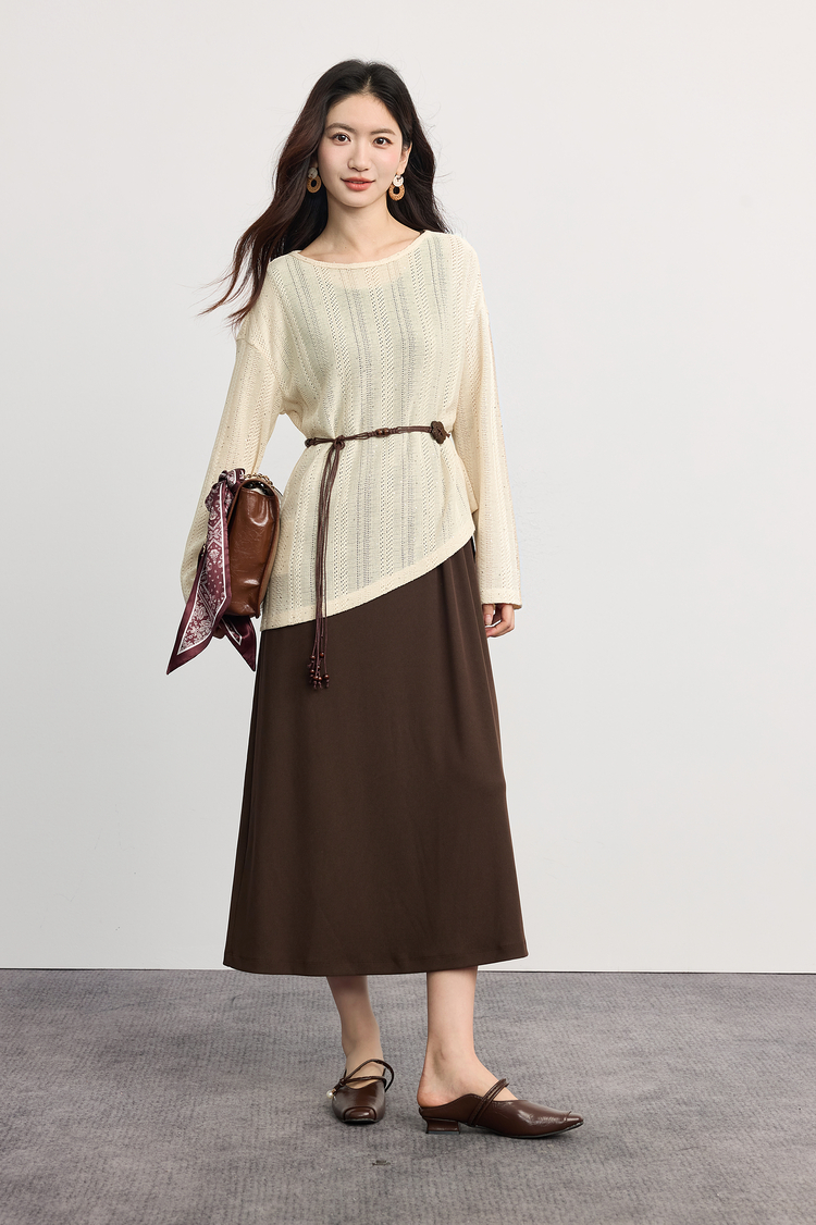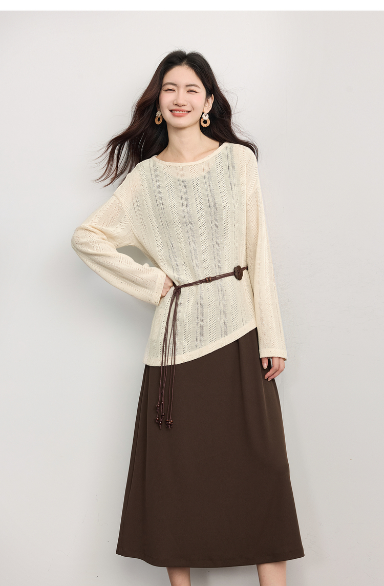 【周末秒杀】熙世界休闲度假波嬉风套装女士秋季镂空罩衫吊带背心连衣裙两件套