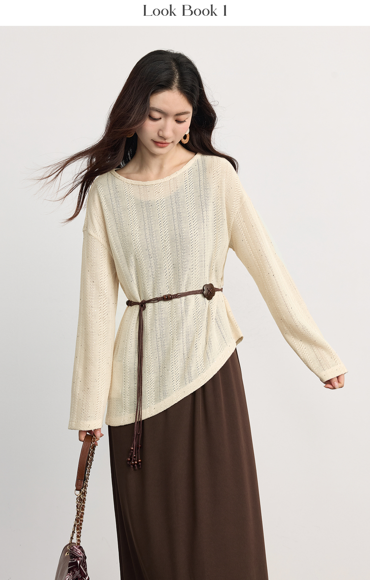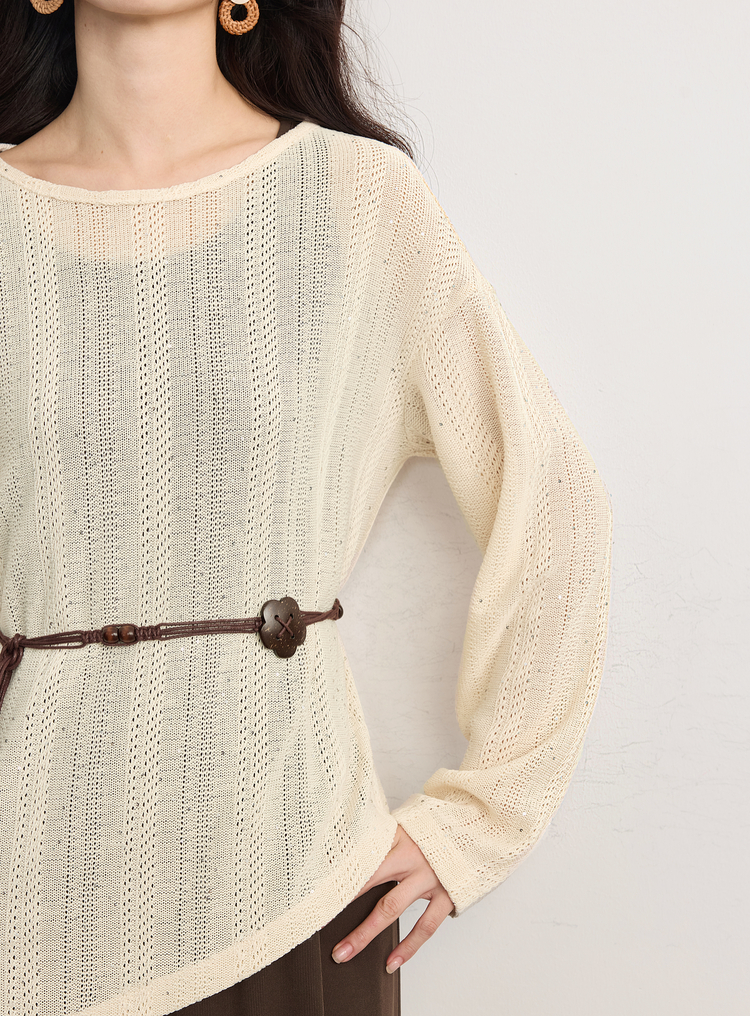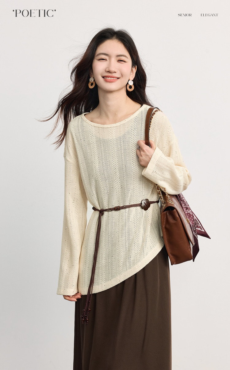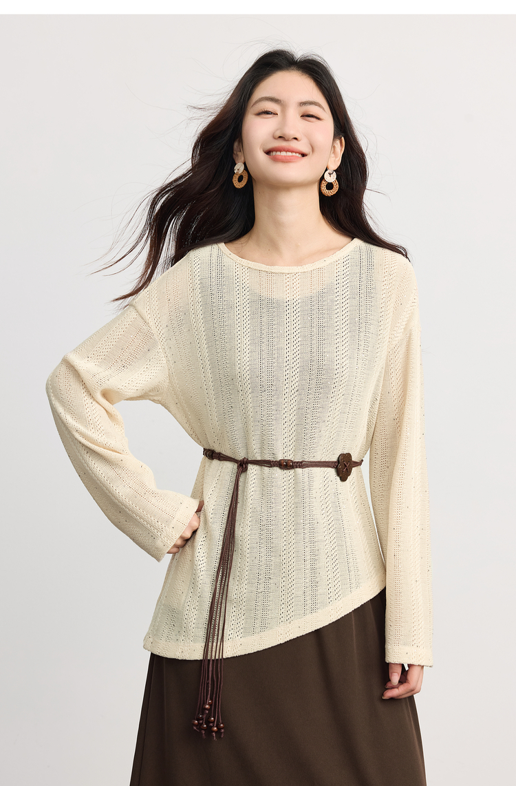 【周末秒杀】熙世界休闲度假波嬉风套装女士秋季镂空罩衫吊带背心连衣裙两件套