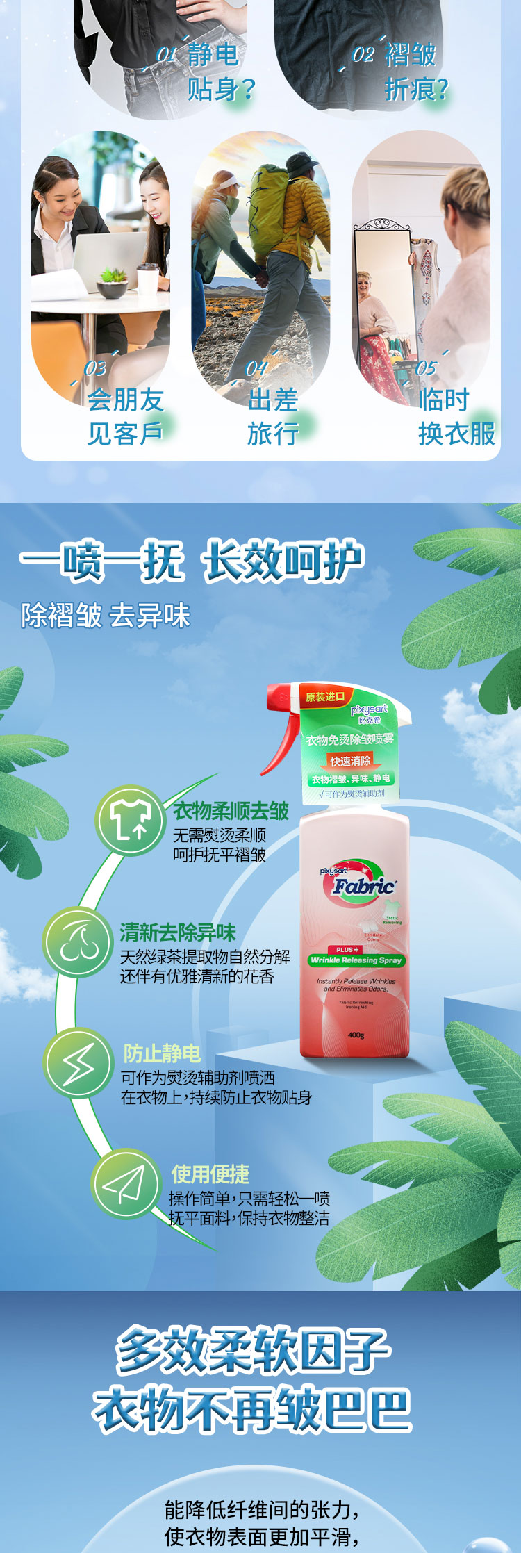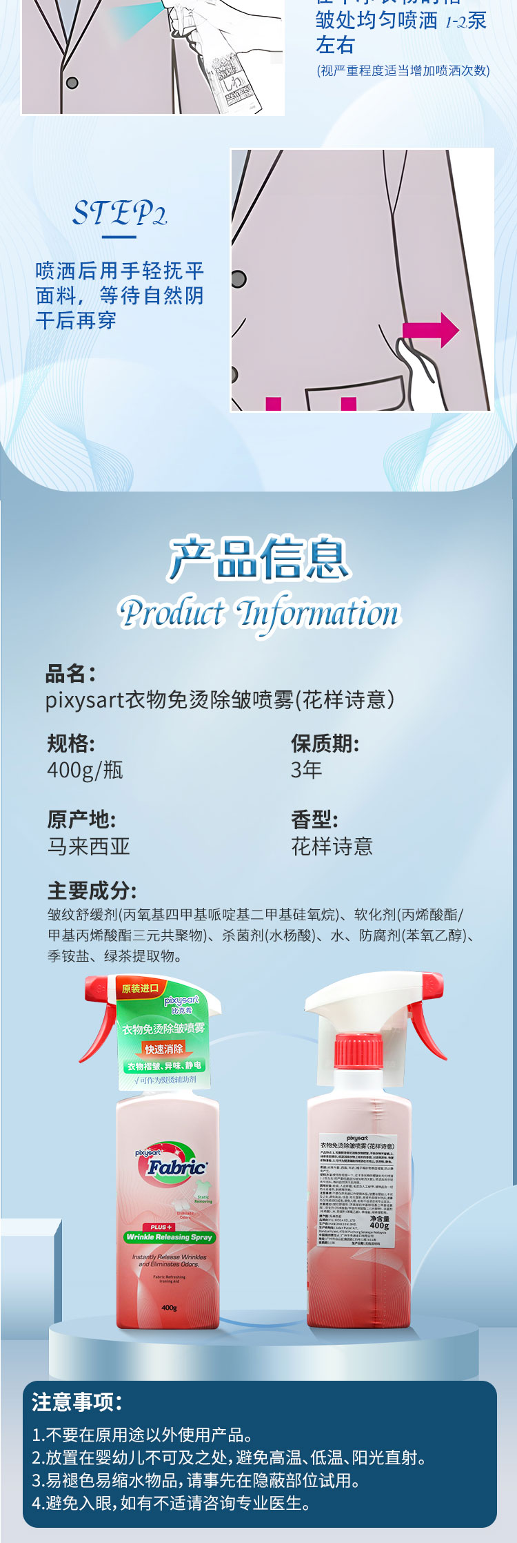 马来西亚进口pixysart衣物免烫除皱喷雾400g