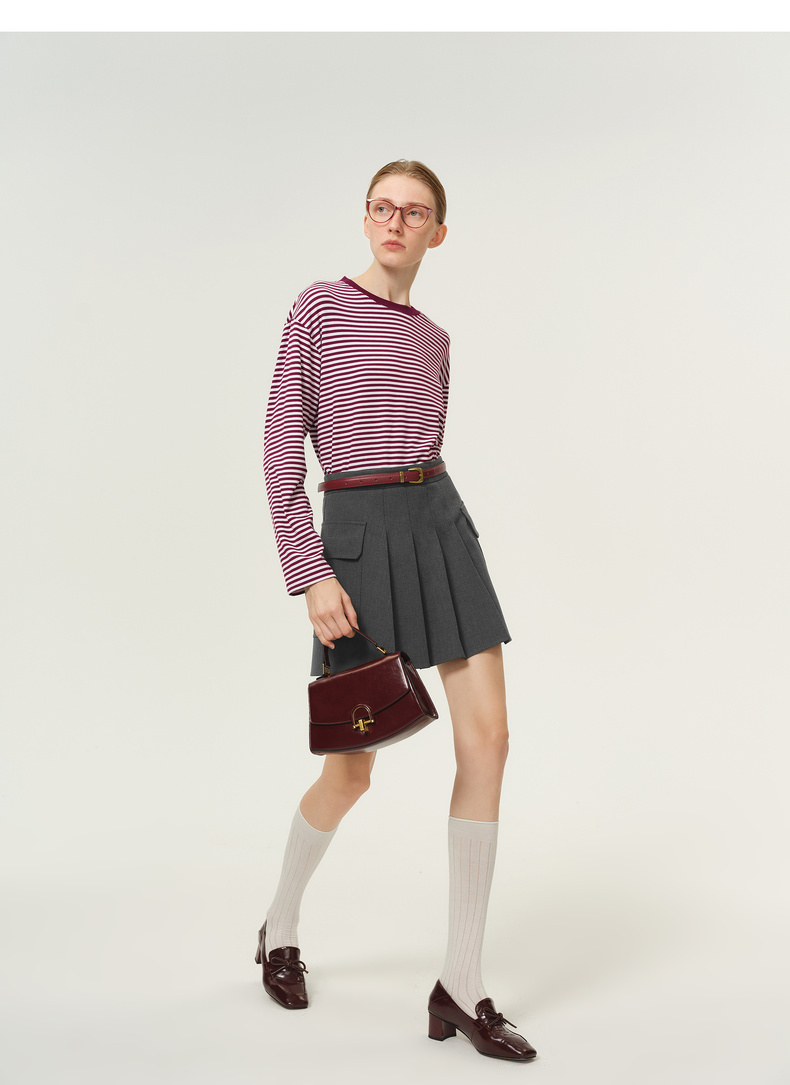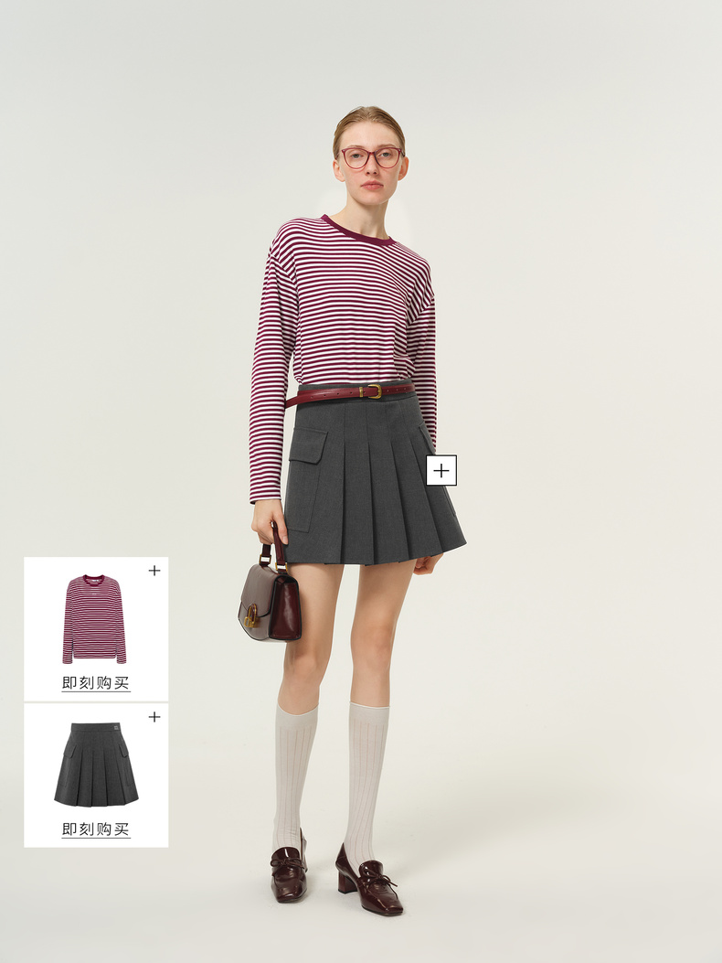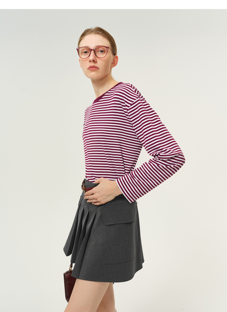 【积分换购不退货】【特惠不退货】伊芙丽圆领条纹T恤针织衫1FA601301