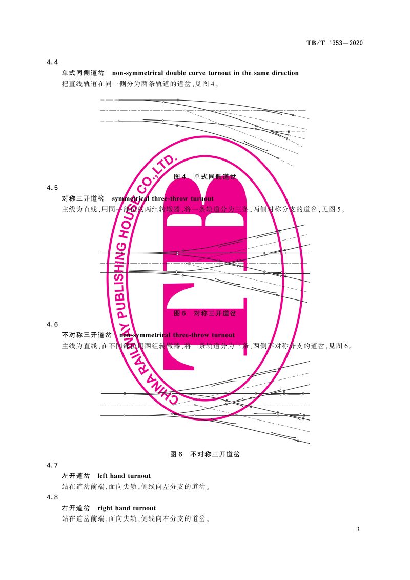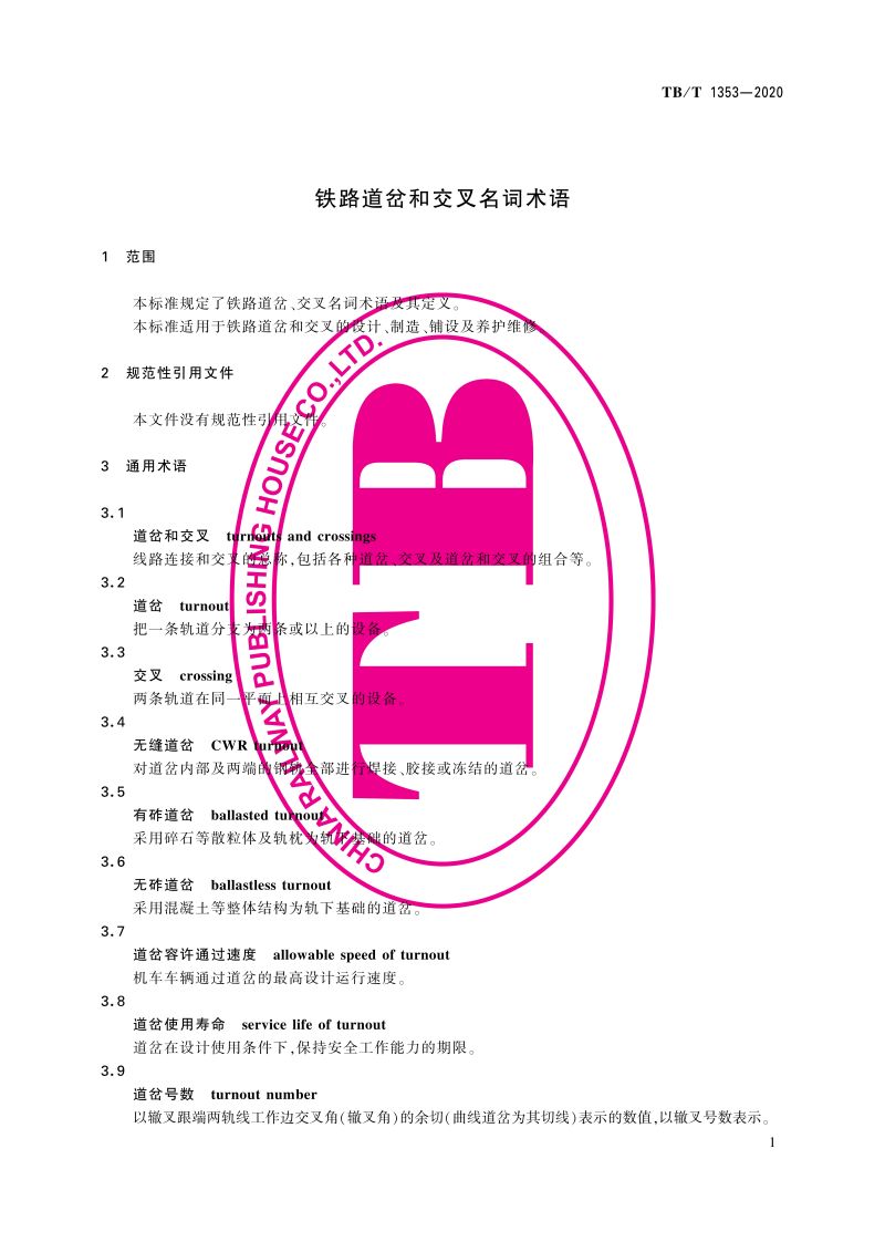 15113.6232 铁路道岔和交叉名词术语 TB/T 1353-2020