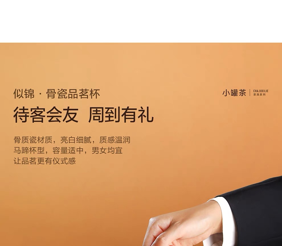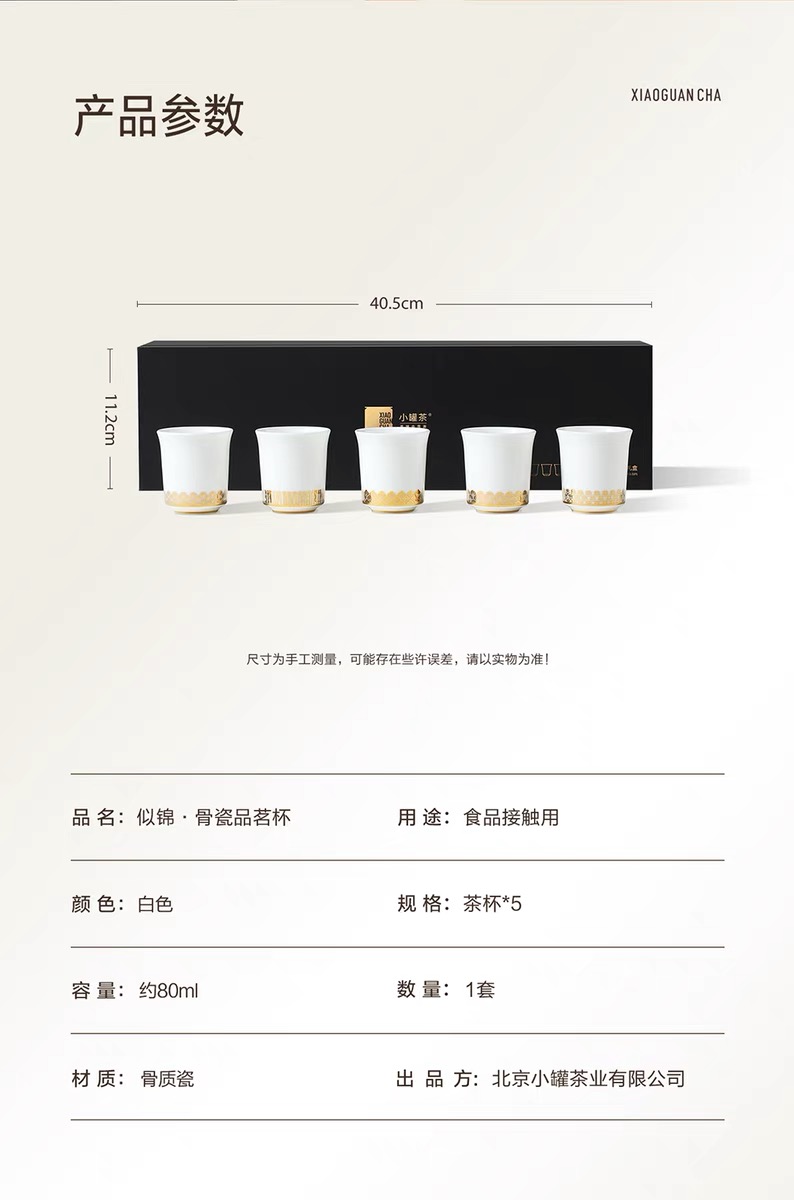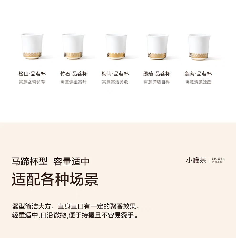 小罐茶似锦·骨瓷品茗杯组合高档茶具礼盒商务马蹄品茗杯 茶杯*5