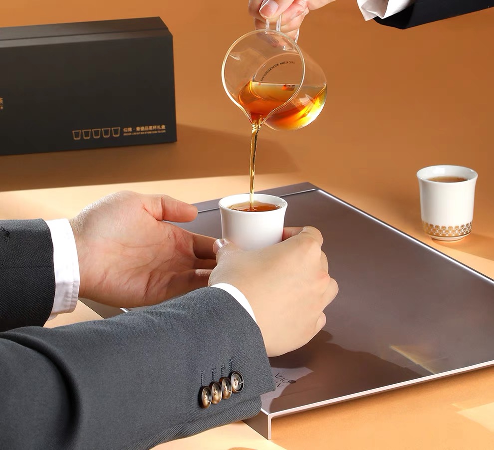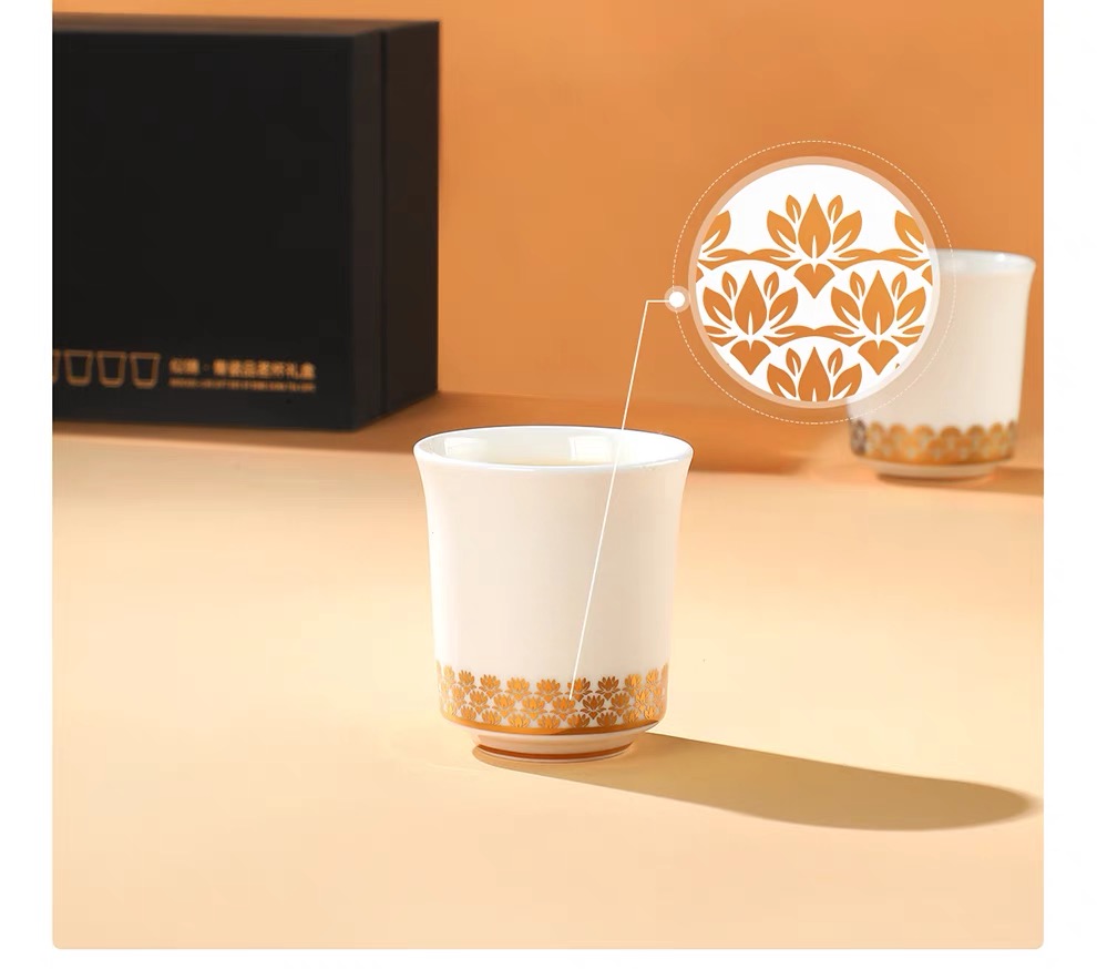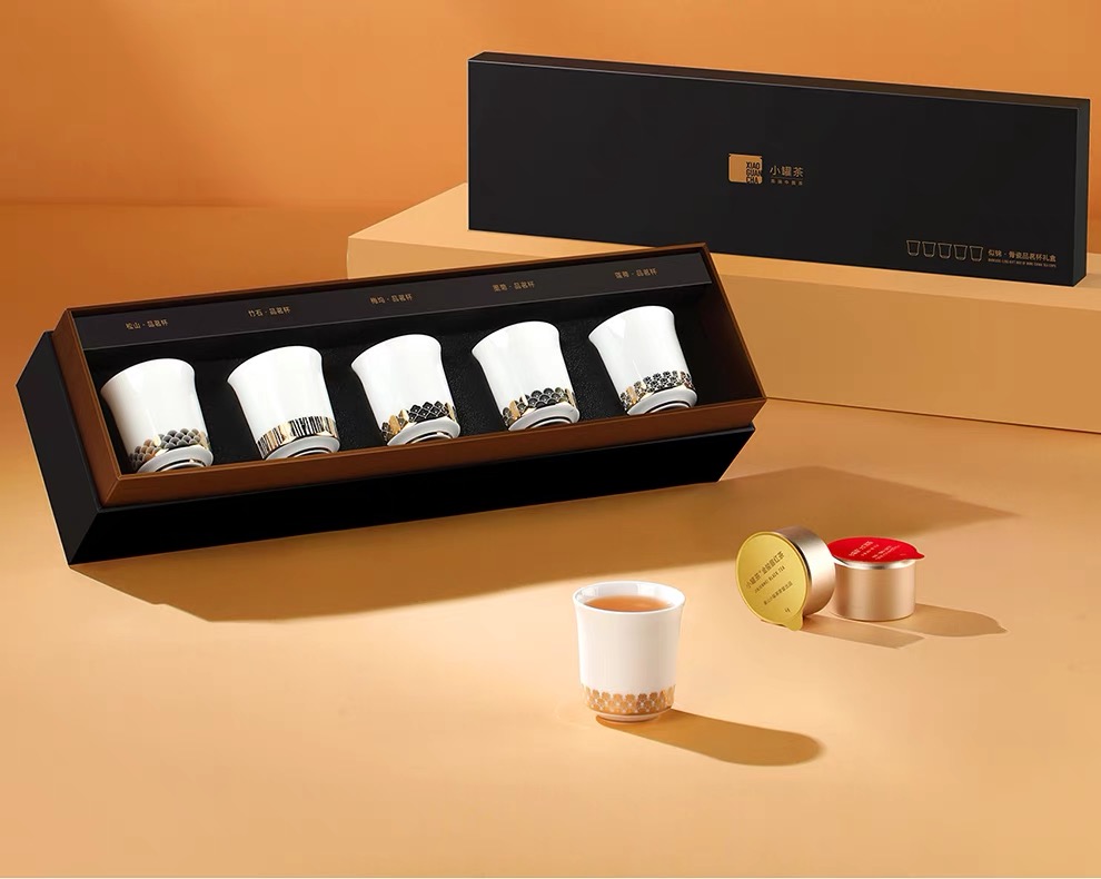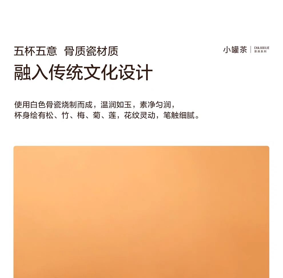 小罐茶似锦·骨瓷品茗杯组合高档茶具礼盒商务马蹄品茗杯 茶杯*5