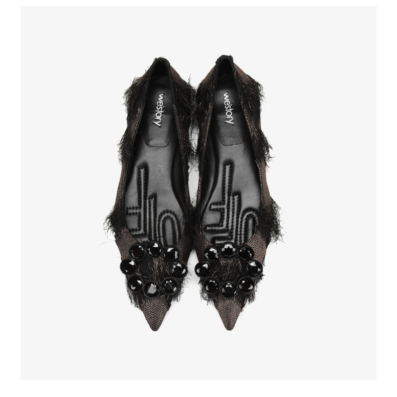 westory新款牛皮铆钉饰扣平底舒适小尖头单鞋S24CE75161(第二批)