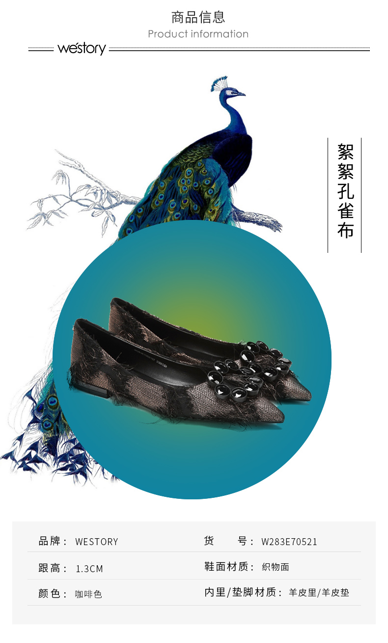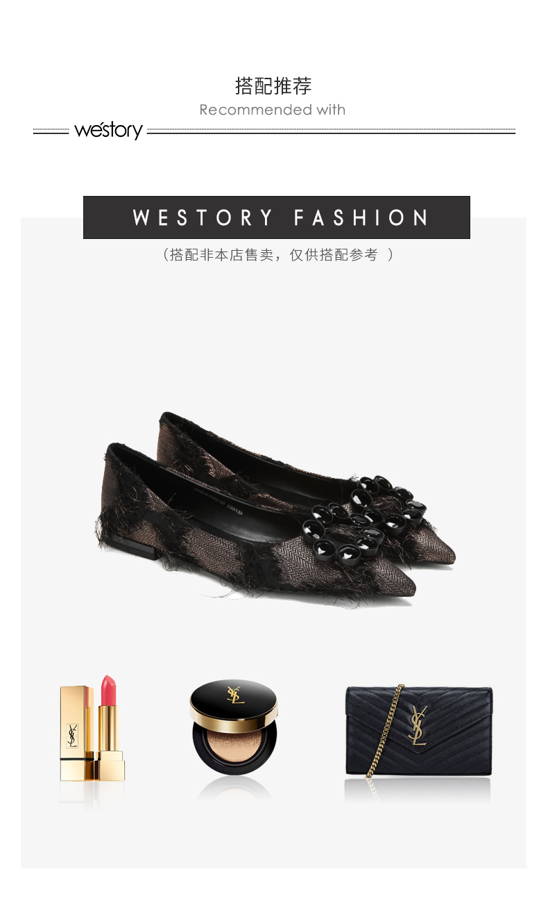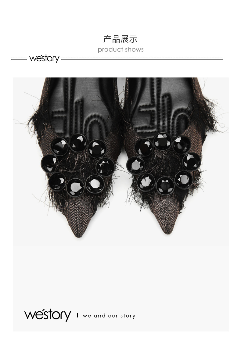 westory浅口单鞋舒适低跟水钻圆扣女鞋W283E70521