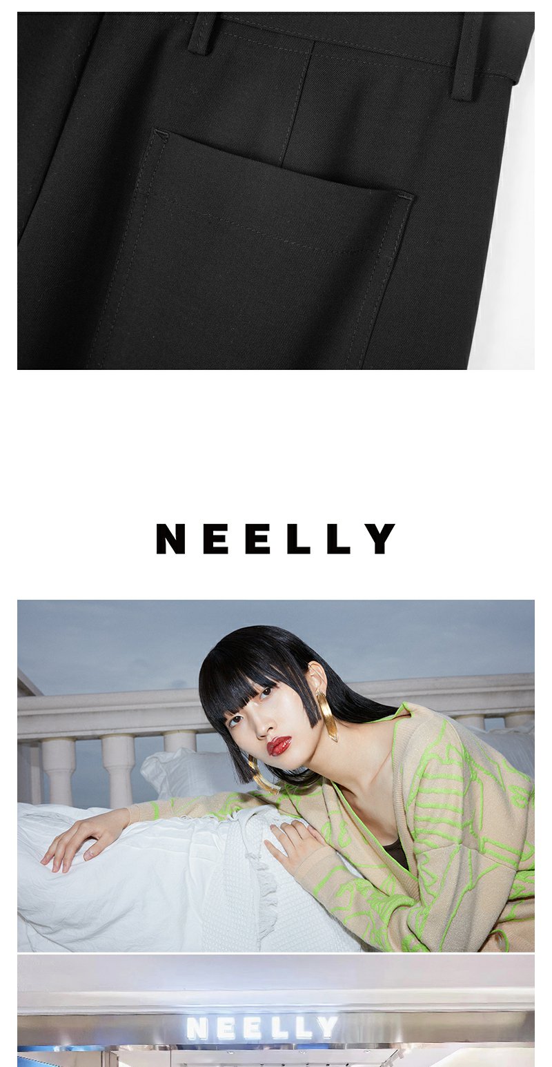 NEELLY纳俪商场同款通勤宽松直筒裤休闲裤早秋新款时尚百搭长裤女N23081H01093