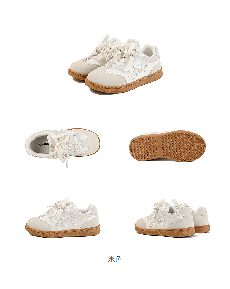 MIO米奥春季新款百搭休闲鞋做旧板鞋金属珠链装饰时尚女鞋M251551304