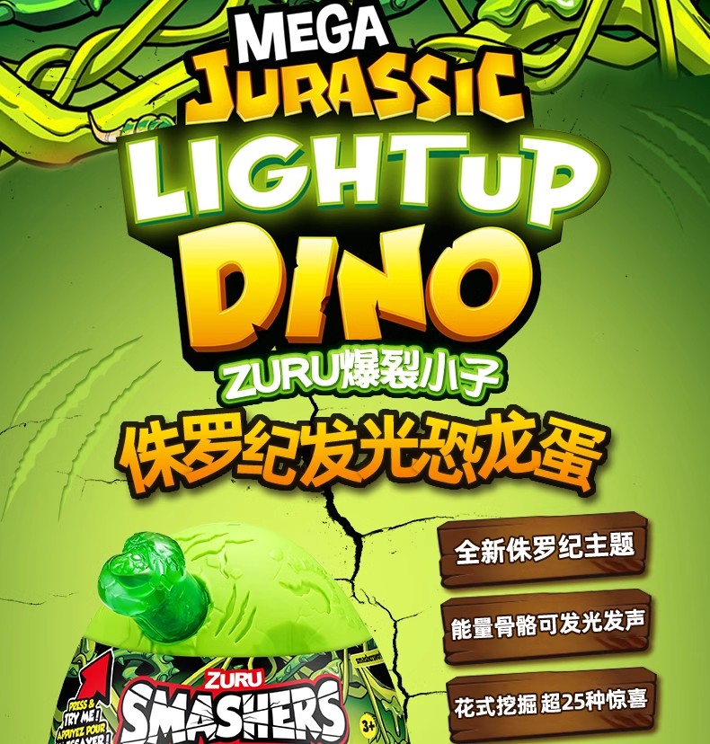 Zuru 爆裂小子侏罗纪发光考古蛋 盲盒蛋潮玩男孩发声玩具儿童生日礼物 8岁+