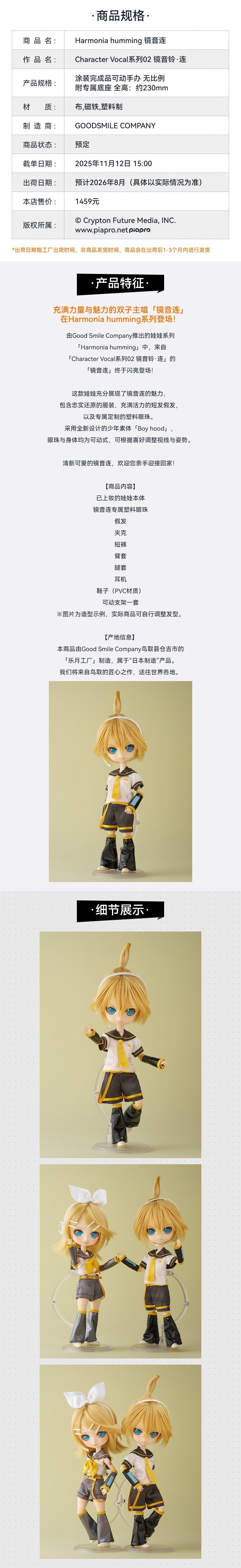 【GSC预售定金】Harmonia humming 镜音连 手办模玩 Character Vocal系列02 镜音铃·连