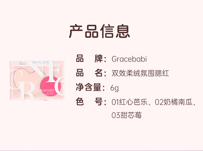 【品牌新品-单盒装】Gracebabi 双效柔绒氛围腮红
